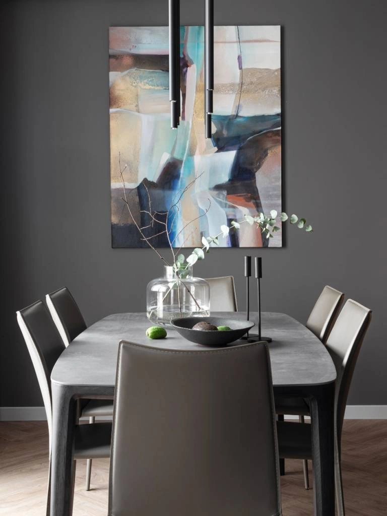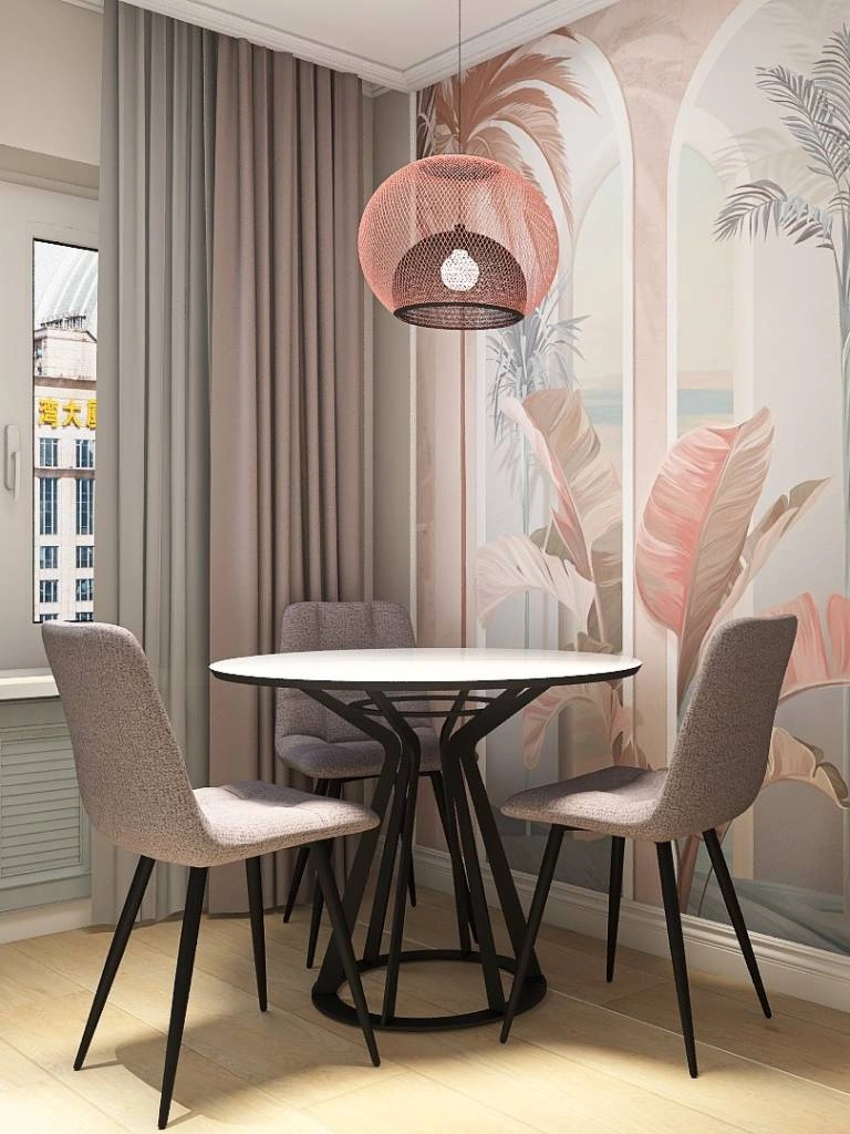 Дизайн обеденной зоны должен подходить к окружению. Поэтому при выборе стола и стульев важны стены, пол, потолок, остальная мебель.
