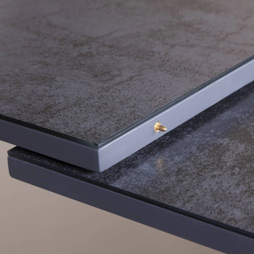 За счет этого стол становится матовым, с необычной уникальной текстурой и расцветкой, а так же невероятно прочным. На нем не остается отпечатков пальцев, что очень практично в ежедневной эксплуатации.