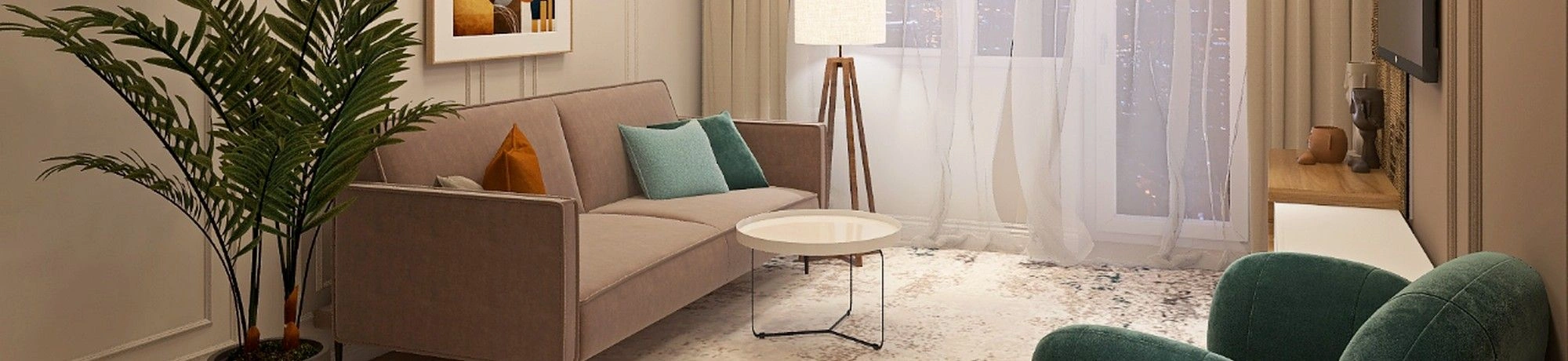 В маленькой квартире важно правильно зонировать пространство. Для этого нужно понять привычки членов семьи. Тем, кто любит читать в уединенной обстановке или заниматься рукоделием, можно организовать лаунж зону со столом, креслом, светильником. Отдыхающим в общении или при просмотре ТВ понадобится вместительный диван.