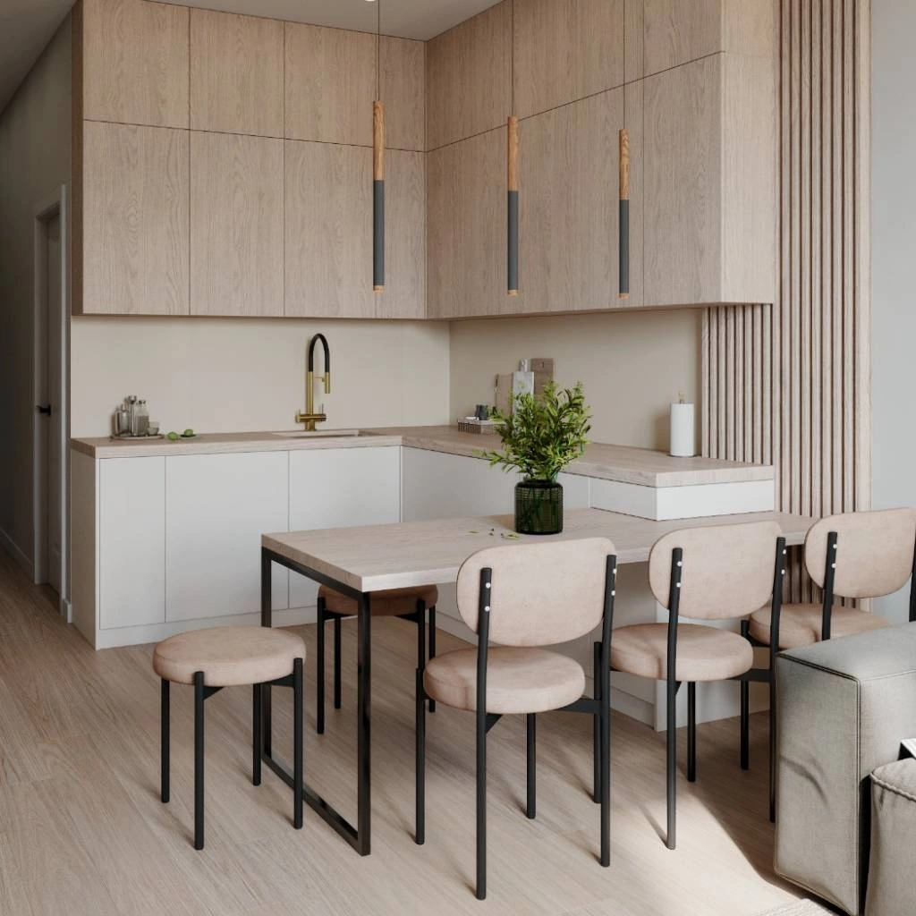 Совет: для небольшой комнаты лучше выбирать квадратные или прямоугольные столешницы.