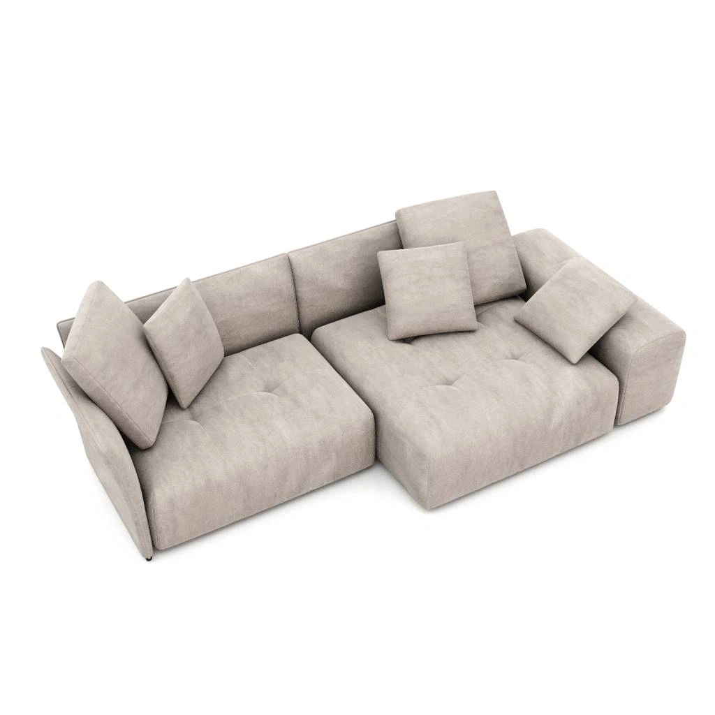 Модульная мягкая мебель мобильна. В собранном виде диван занимает минимум места. По необходимости делится на кресла, пуфы, столики, как модель Campo. Секции с раскладными механизмами заменяют спальное место.