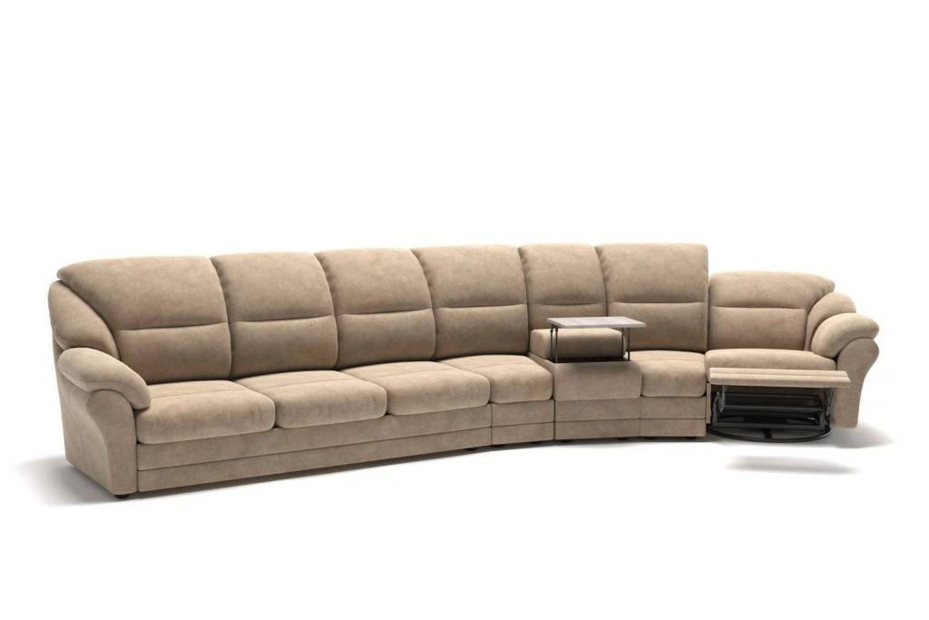 Радиусные модульные диваны становятся акцентом в интерьере. Благодаря изгибу в 10-180 градусов смотрятся оригинально. Например, Ridberg станет главным героем в обстановке современного стиля. Модульный угловой диван способен превращаться в прямой и П-образный. Зависит от ситуации. Например, смотреть ТВ компаний удобнее на прямом диване. Для общения лучше поставить секции в форме буквы Г или П. Так сидящие лучше видят друг друга. У моделей с оттоманкой часто предусмотрены ящики для хранения. Сидя на них, можно вытянуть ноги, а значит, не нужен пуф.