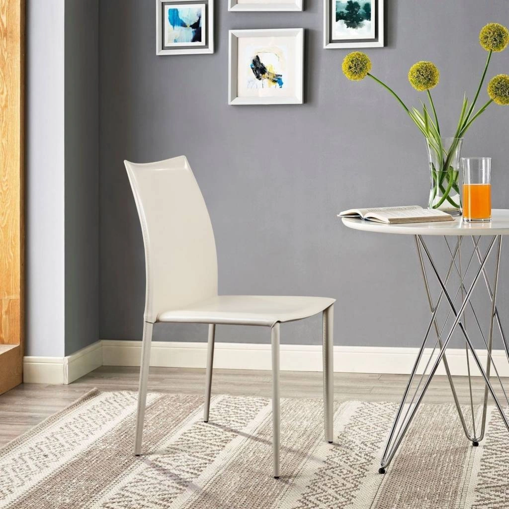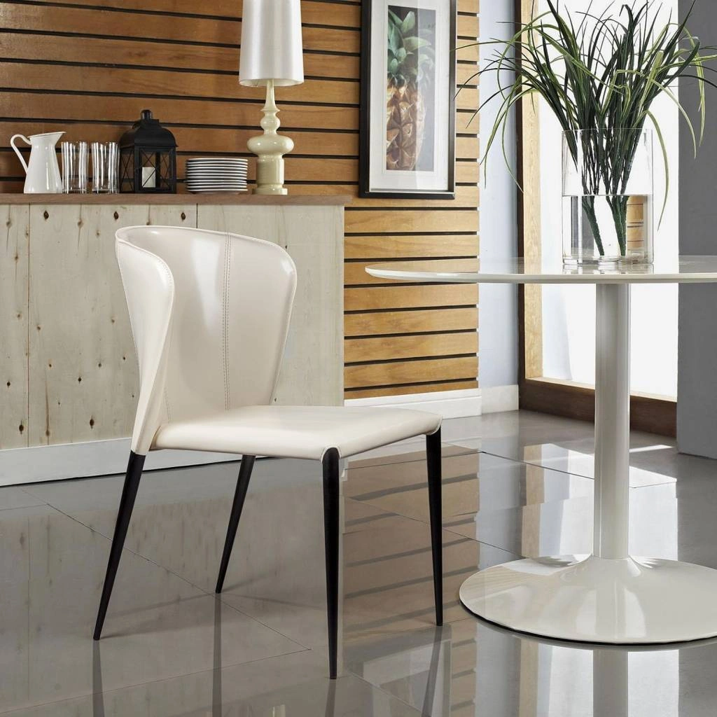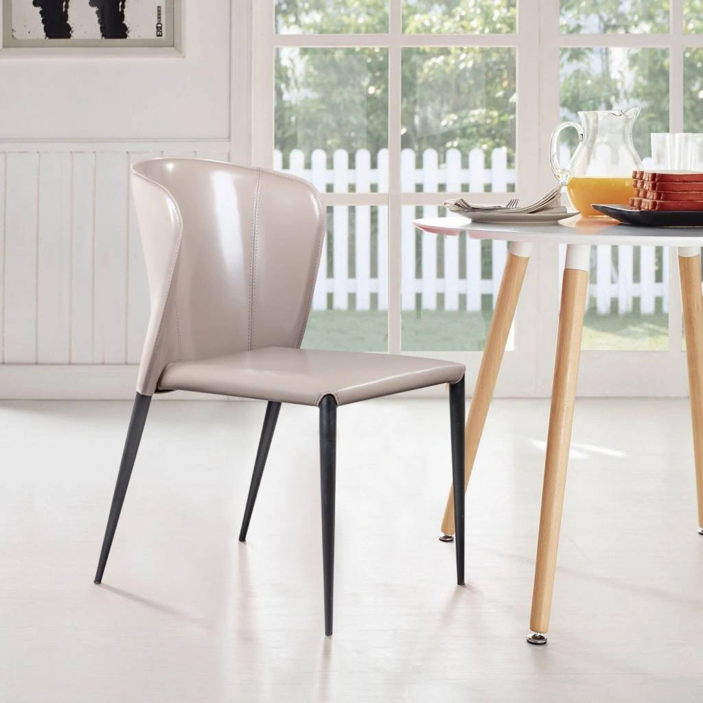 Если древесная фактура кажется вам устаревшим приемом, стулья из экокожи или натуральной станут достойной заменой дереву.