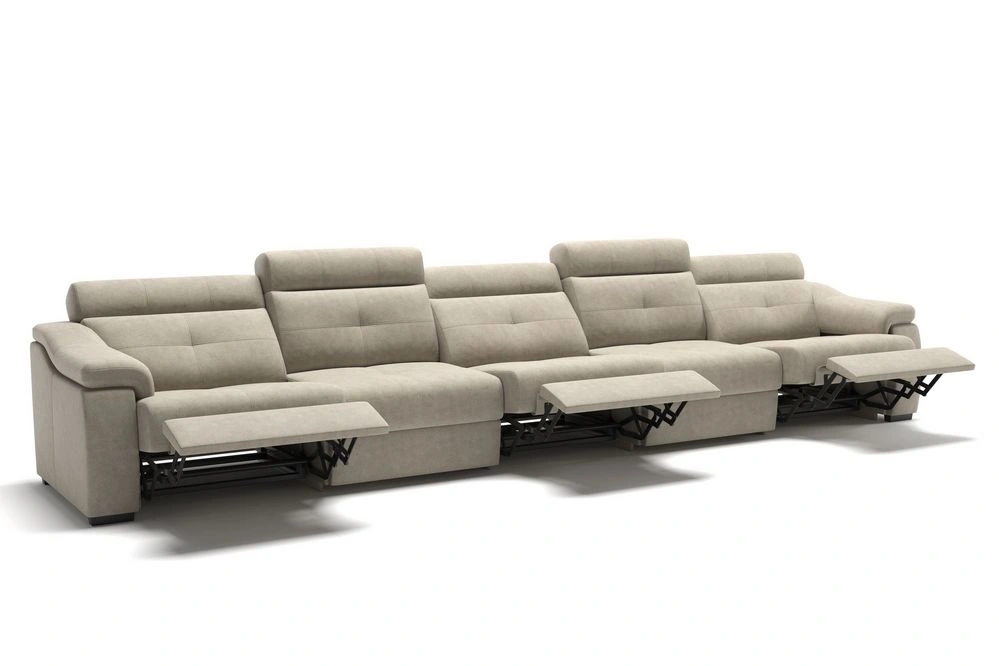 Традиционно реклайнеры ассоциируются с креслами, но конструкторское бюро Top concept активно внедряет механизмы в диваны. Мы можем изготовить шедевральный диван для домашнего кинотеатра или просторной гостиной, в который войдут несколько реклайнеров и встроенный бар! Обратите внимание на дополнительное революционное решение в модульных диванах Top concept — реклайнеры без подлокотников.