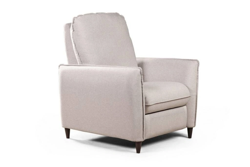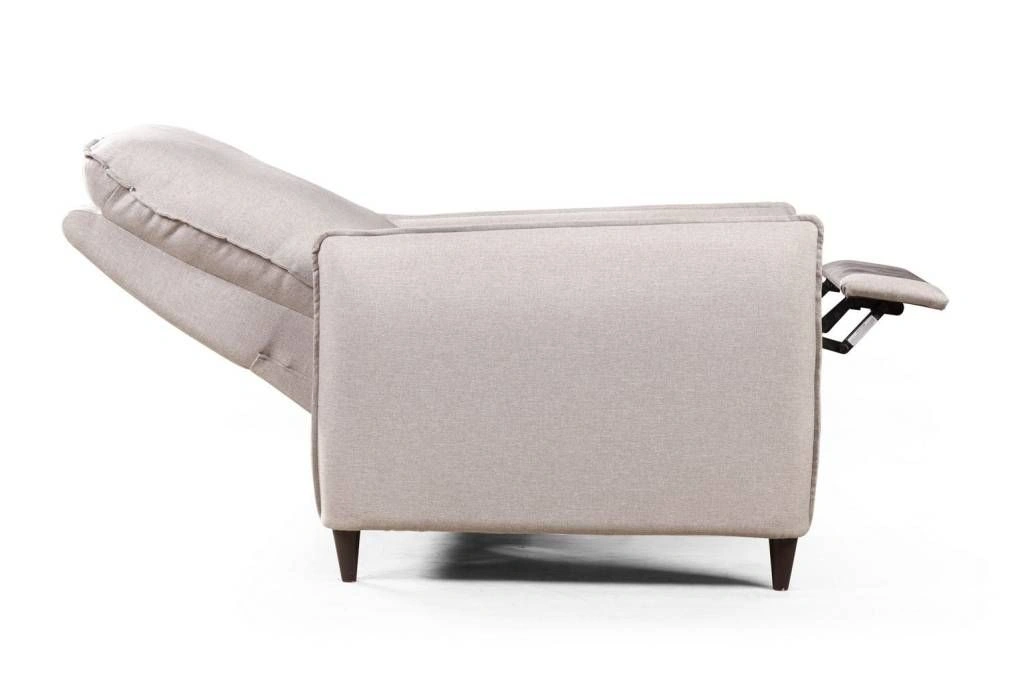 Помимо стандартного механизма существует система «push to open» — нужно упереться руками в подлокотники, и откинуться назад, приложив усилие на спинку. При нагрузке на спинку подножка поднимается самостоятельно. Оцените функционал, и как мебель выглядит в разложенном виде, на примере кресла с механическим реклайнером из коллекции Hans.