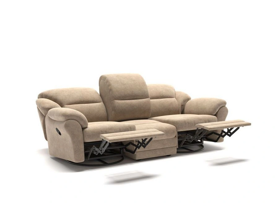 Важный факт — электро-реклайнер может быть зафиксирован в любом положении. Это вариант для максималистов в части комфорта. Трансформируется электрический реклайнер одним нажатием кнопки на пульте, либо на встроенной сенсорной панели! Механизм трансформации обеспечивает плавный ход, без рывков. Еще можно выбрать тот угол наклона спинки, который позволит чувствовать максимальный комфорт и расслабление — в электрических моделях нет ограничений по количеству позиций. Примером такого решения является электрический реклайнер из коллекции Boston.