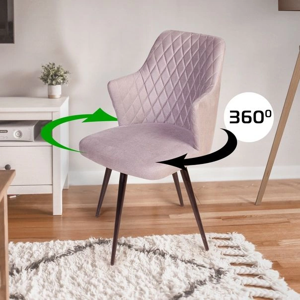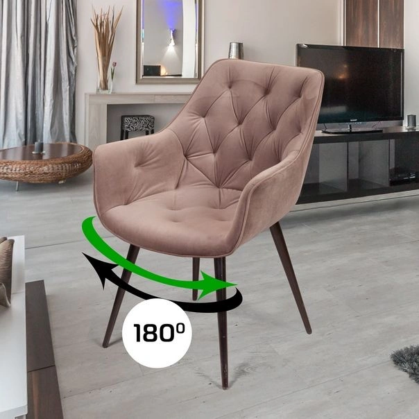 Вся коллекция выполнена из бархатистой и мягкой на ощупь ткани (ткань не является премиум обивкой, что приятно сказывается на итоговой цене изделия). Купить вращающиеся стулья для кухни улучшенного уровня комфорта можно по цене обычных кресел!