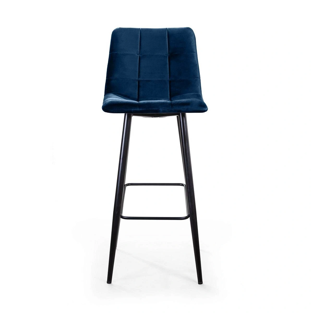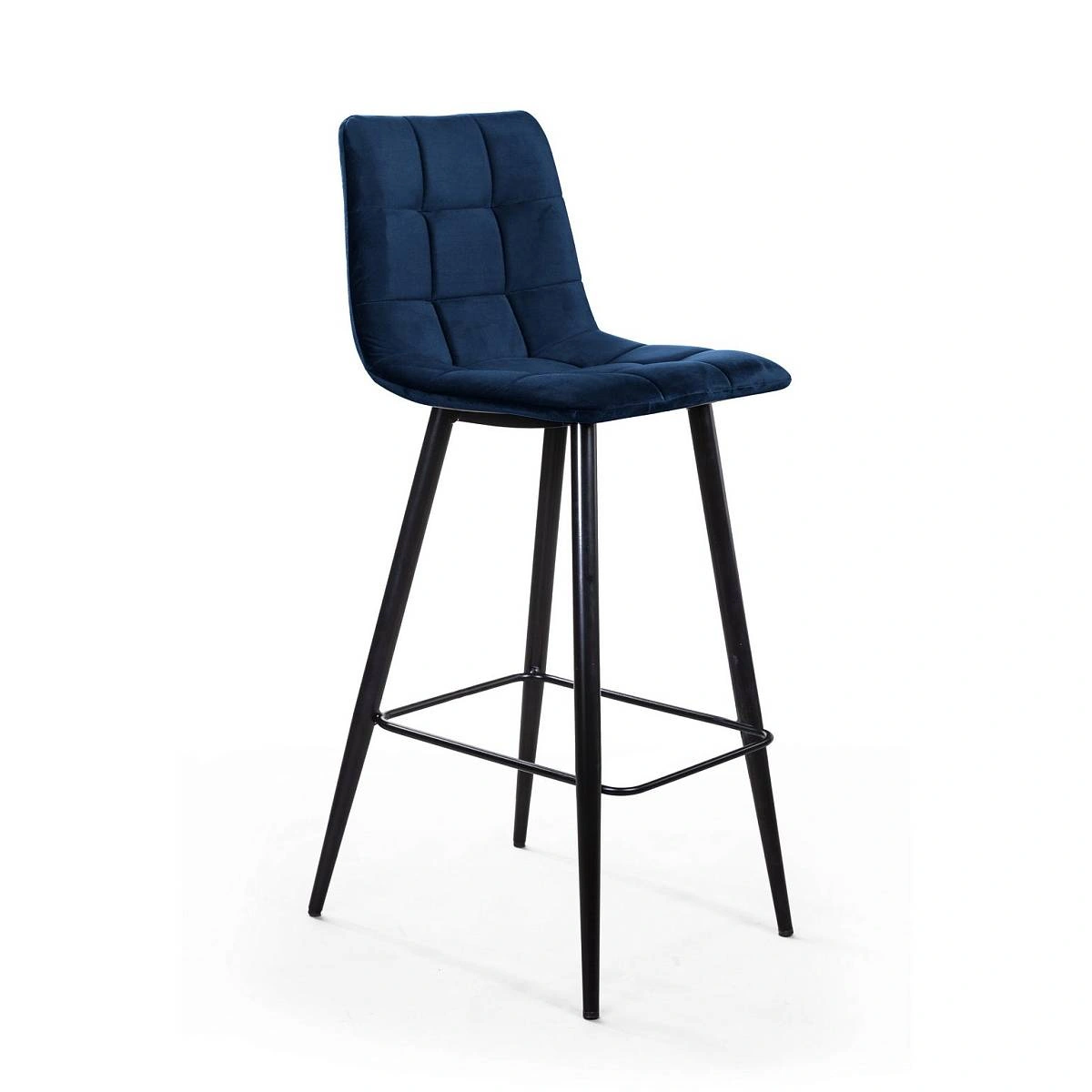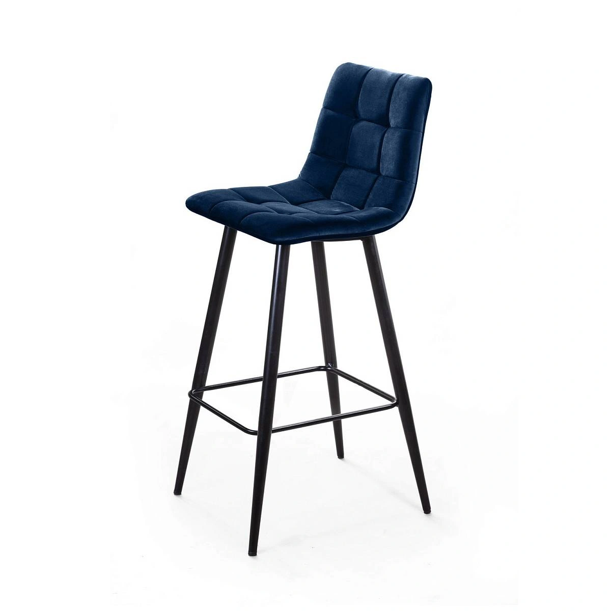 Стул барный UNO, бархат синий 29 / чёрный конус