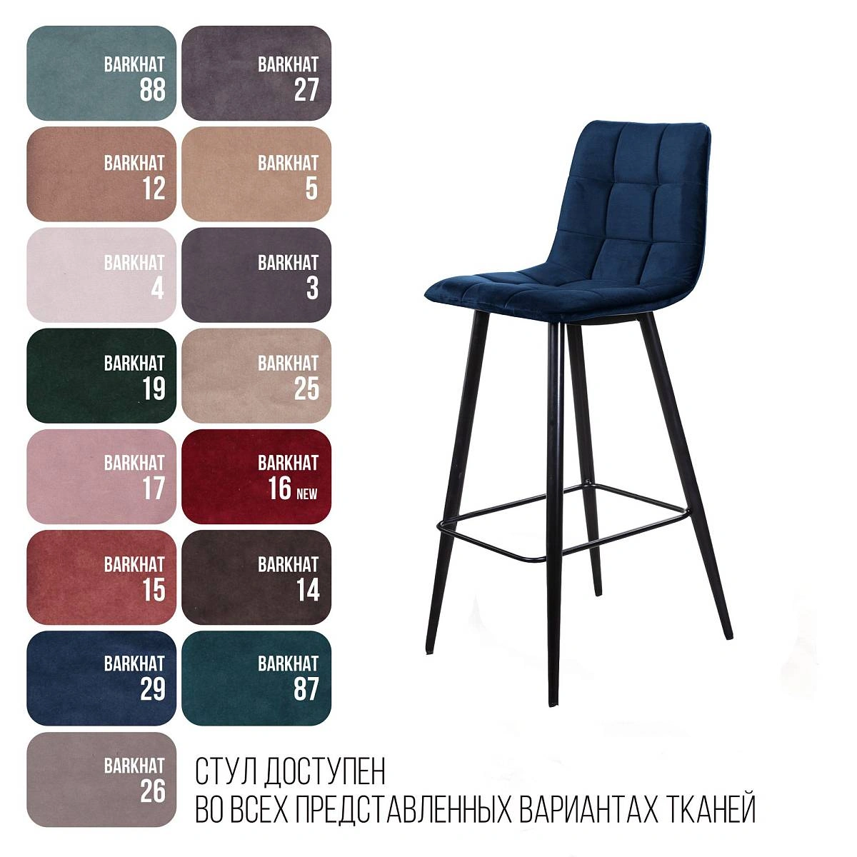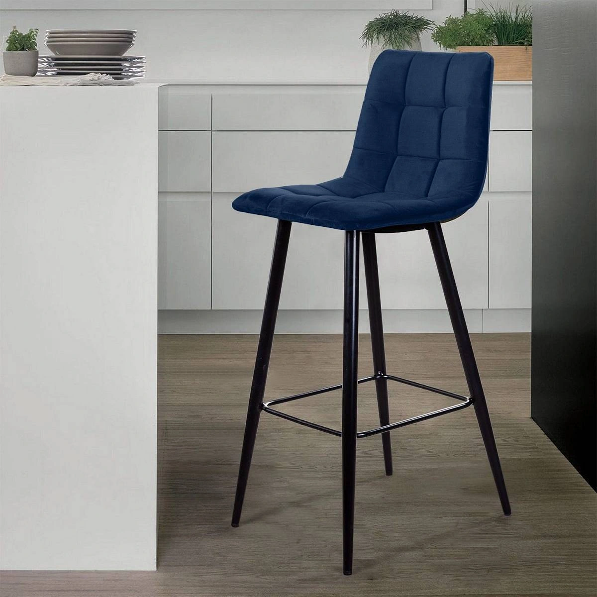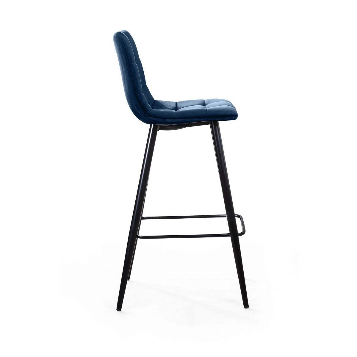 Стул барный UNO, бархат синий 29 / чёрный конус