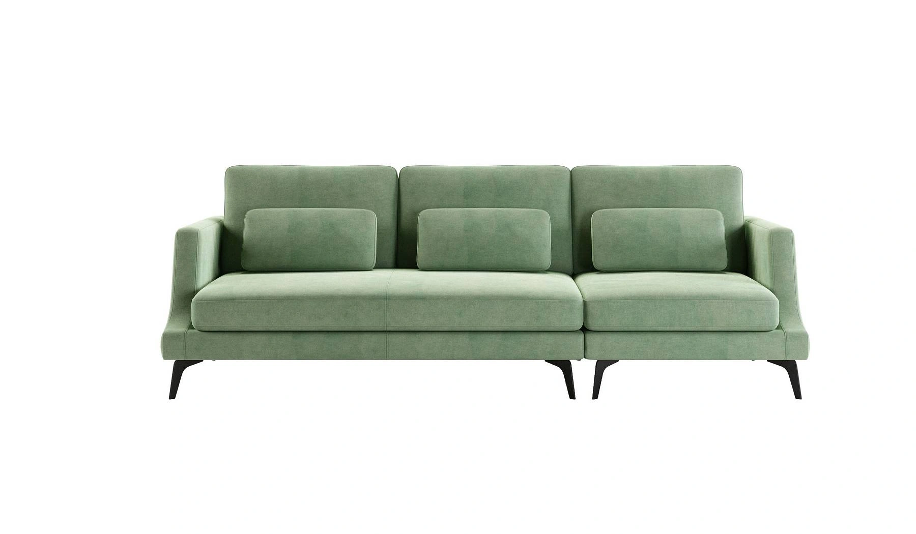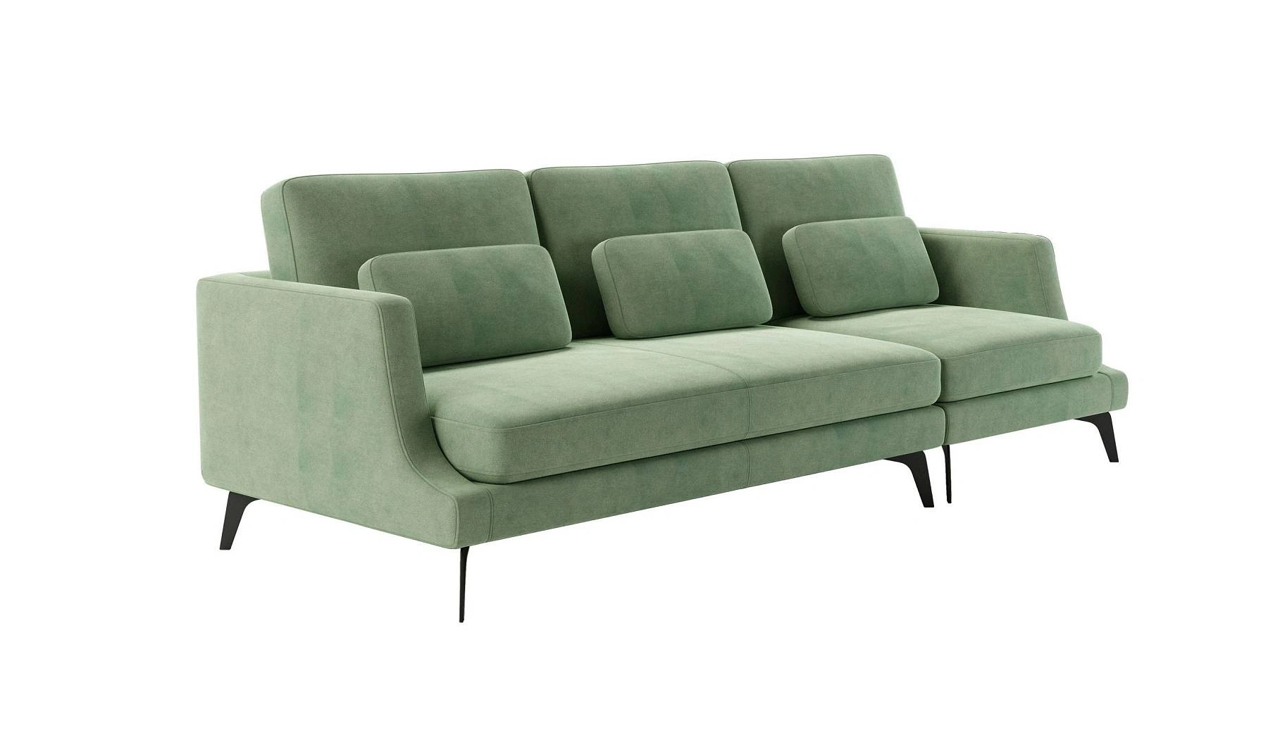Особый шарм коллекции придают высокие элегантные ножки, выполненные в цвете «черный песок». Благодаря этим ножкам создается ощущения легкости и невесомости, диван будто парит в воздухе.