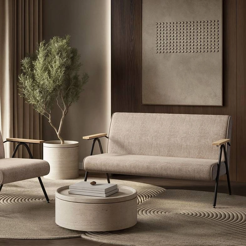 Andy диван двухместный с деревянными подлокотниками, шенилл Shantal beige