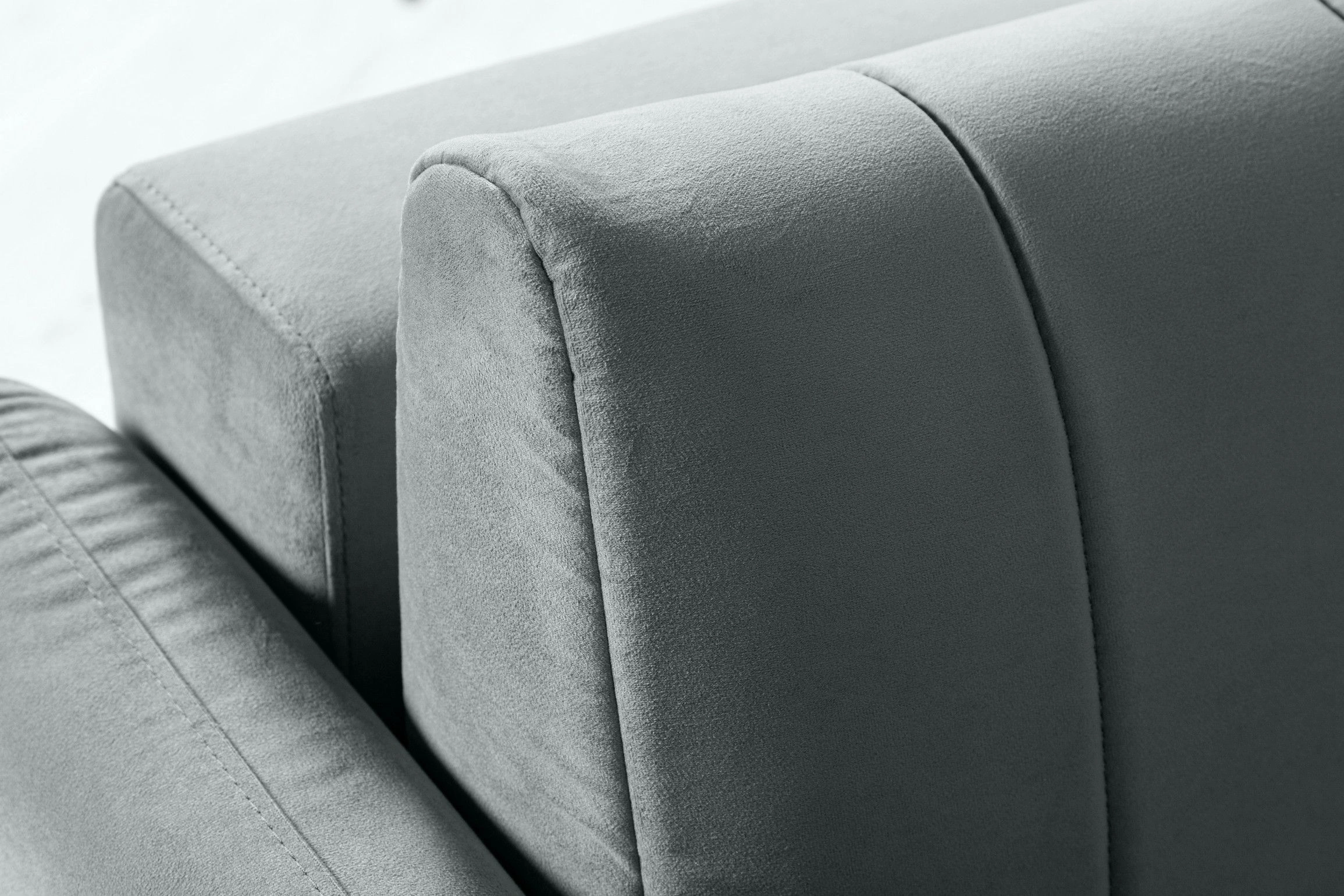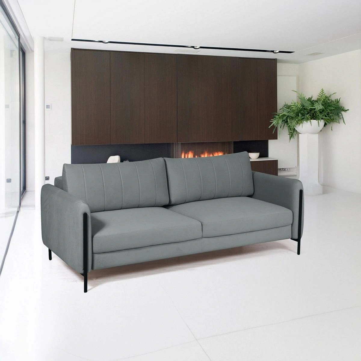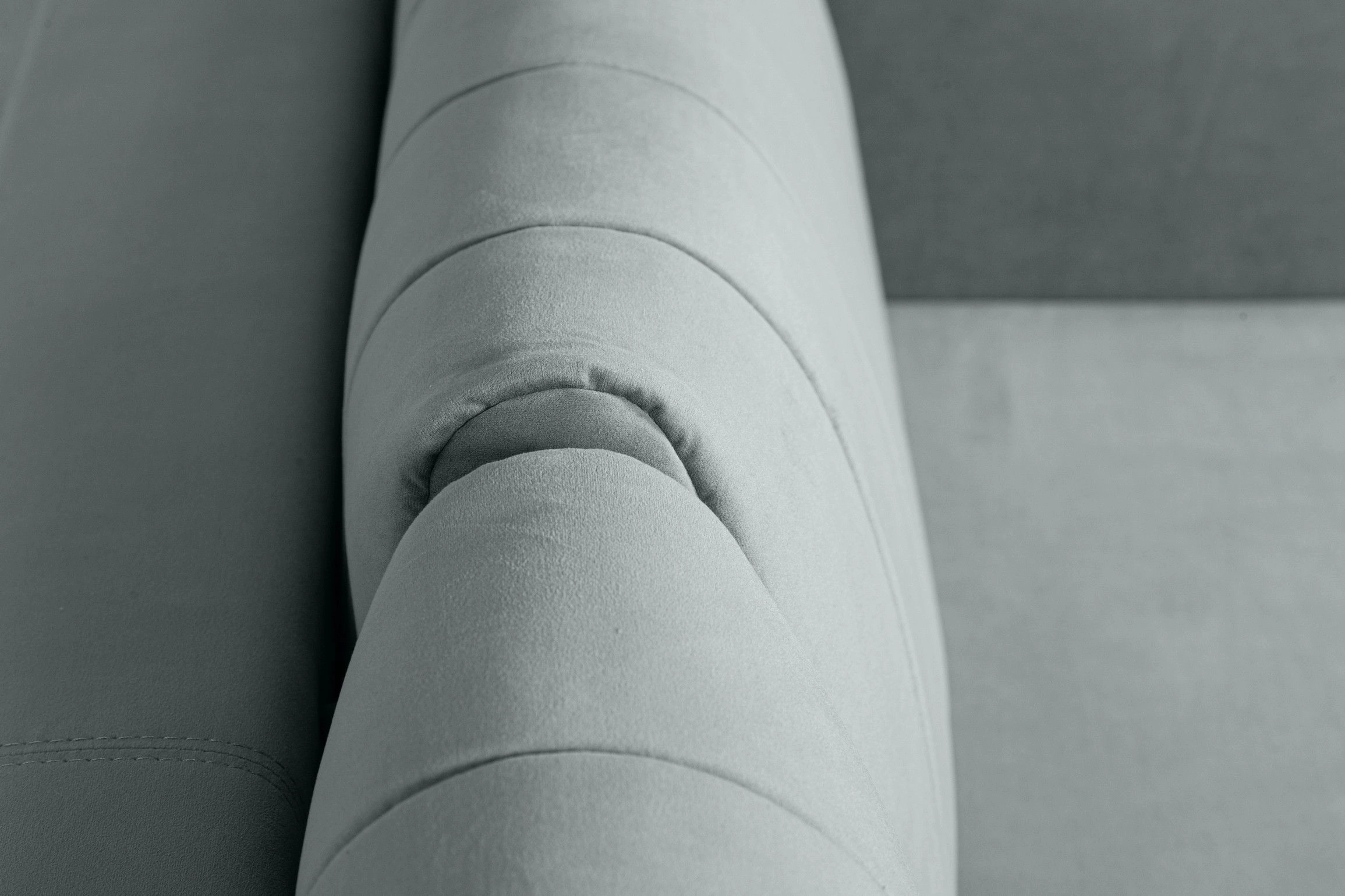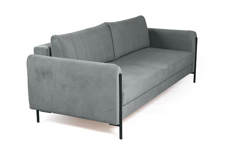 Металлические опоры гладко переходят в декоративный элемент, что придает акцент дивану и неповторимый эффект легкости. Высота опор - 14,5 см. Это позволяют применить современные технологии уборки, например, робот-пылесос.