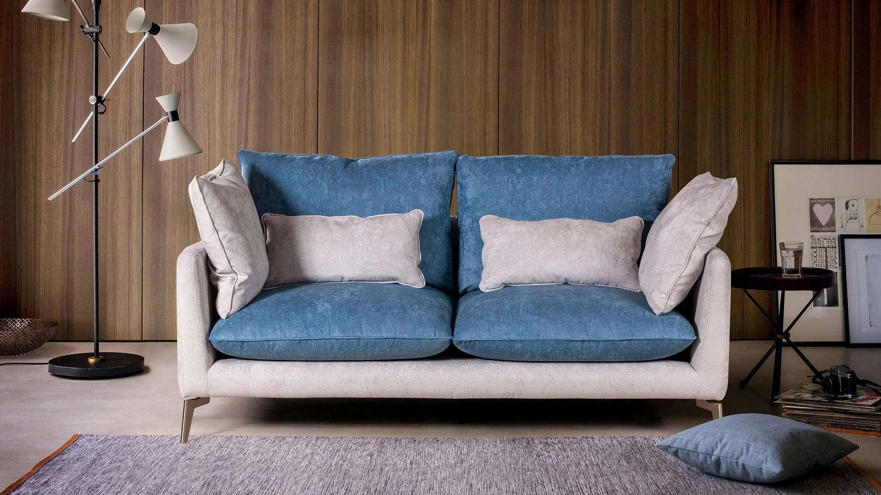 Особый шарм коллекции придают высокие элегантные ножки, выполненные в четырёх цветах. Благодаря этим ножкам создается ощущения легкости и полета, диван будто парит в воздухе. Диван на ножках позволяет проводить уборку с помощью робота- пылесоса.