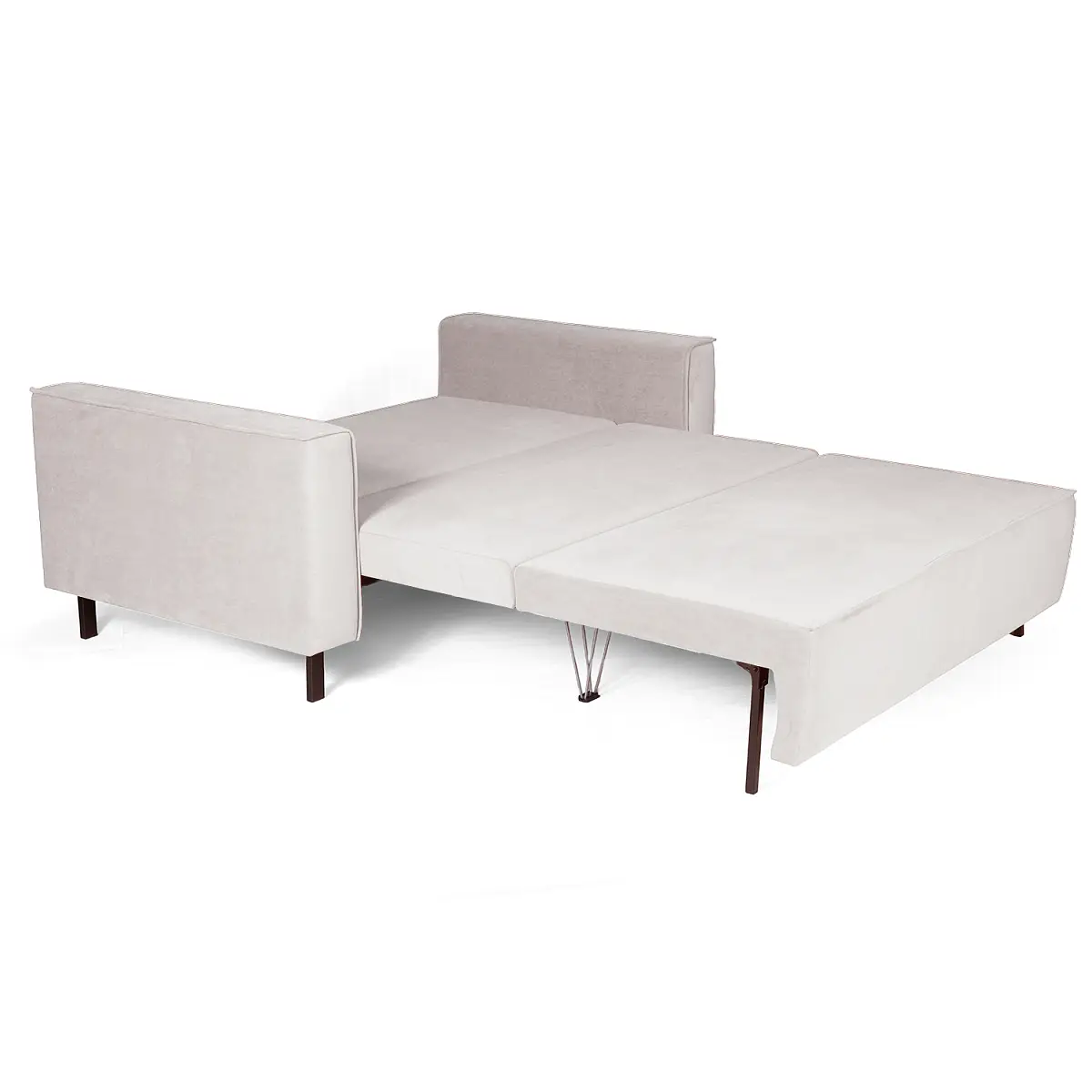Спальное место с цельной царгой выполнено в основном материале, благодаря чему диван сохраняет аккуратный и целостный внешний вид даже в разложенном состоянии. Ширина спального места 140 см подходит для комфортного сна, а увеличенная длина 207 см рассчитана на высоких пользователей (до 195 см). Максимальная допустимая нагрузка — до 180 кг.