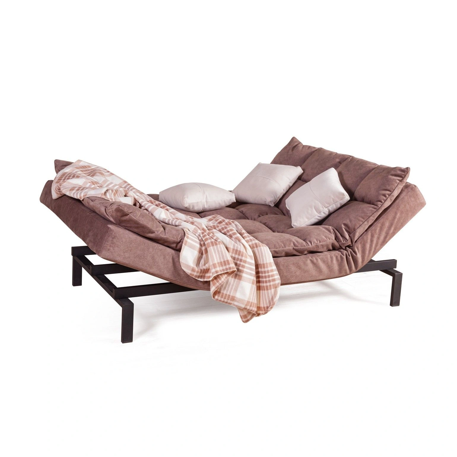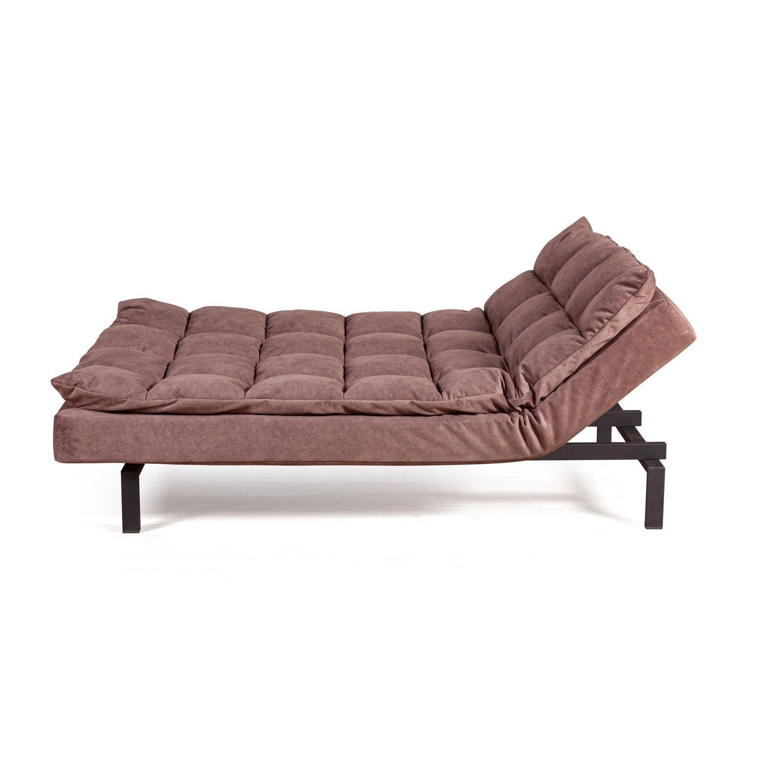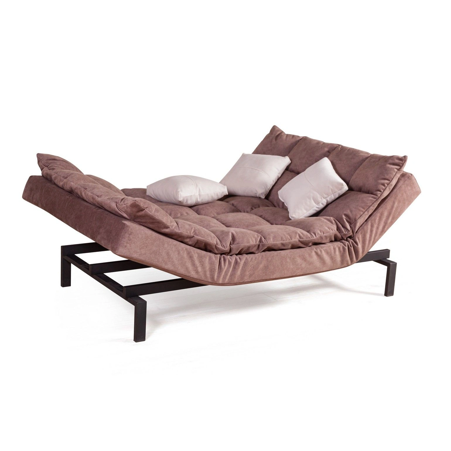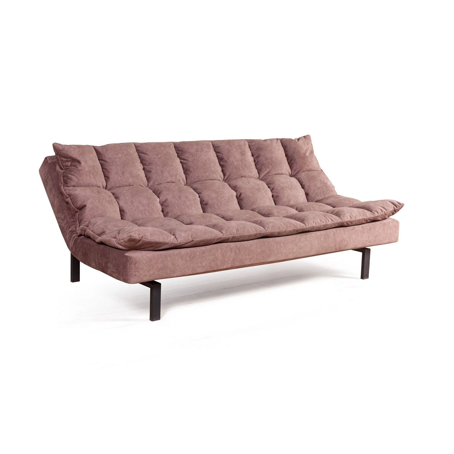 Сочетание объемных квадратов на спинке и сидении создает атмосферу уюта. Модель «Dream» эстетична со всех сторон. На видимых частях нет технической ткани, благодаря этому можно установить диван в центре помещения и зонировать пространство. Диван можно превратить в шезлонг для отдыха (подняв боковые поверхности дивана)