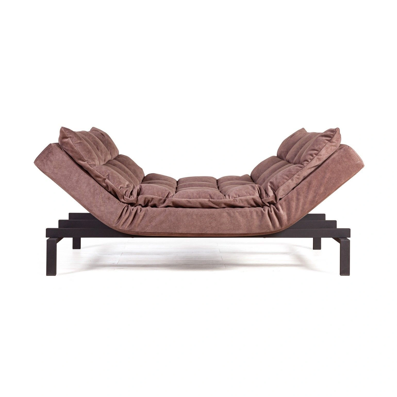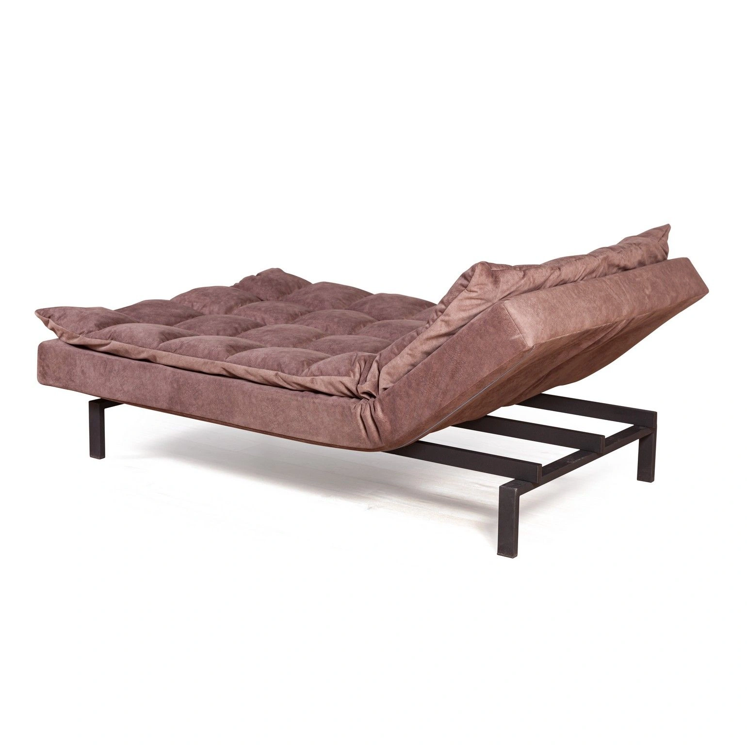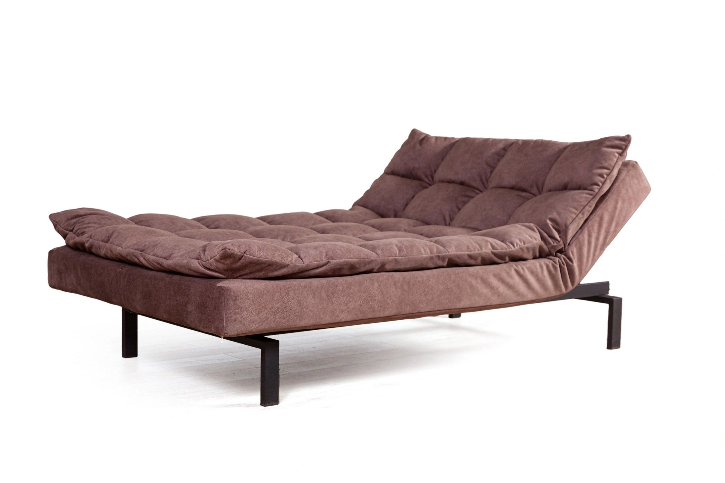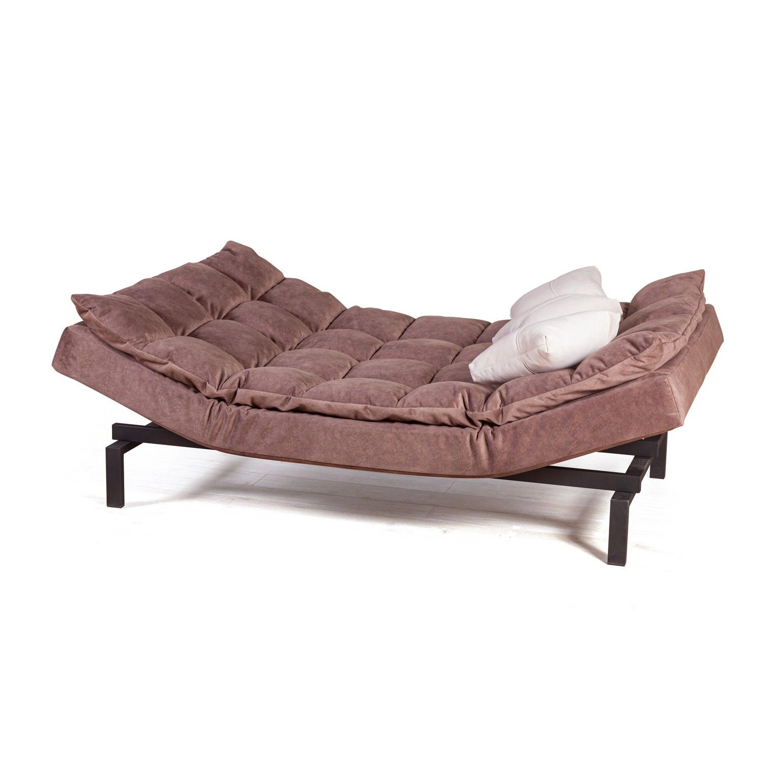 Сочетание объемных квадратов на спинке и сидении создает атмосферу уюта. Модель «Dream» эстетична со всех сторон. На видимых частях нет технической ткани, благодаря этому можно установить диван в центре помещения и зонировать пространство. Диван можно превратить в шезлонг для отдыха (подняв боковые поверхности дивана)