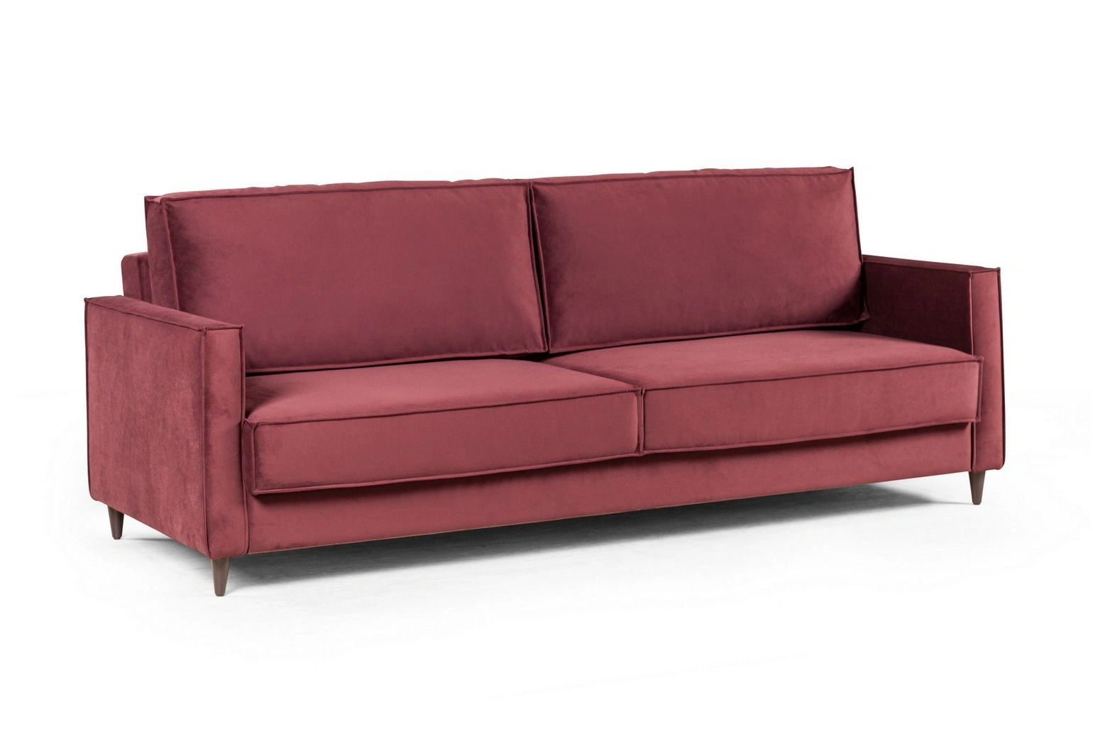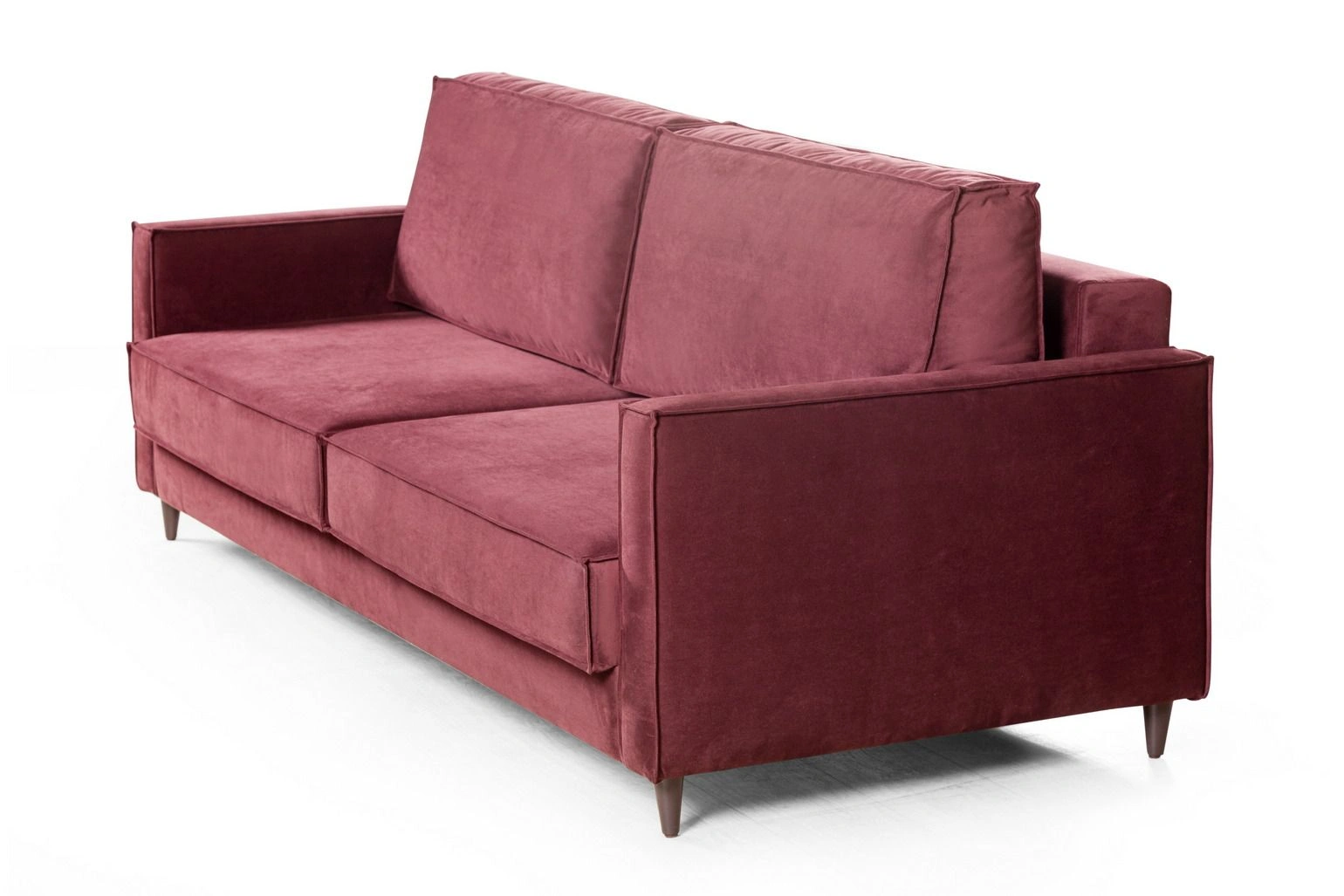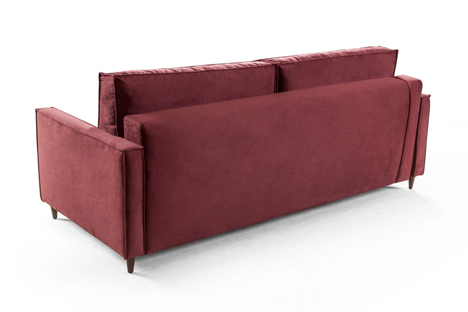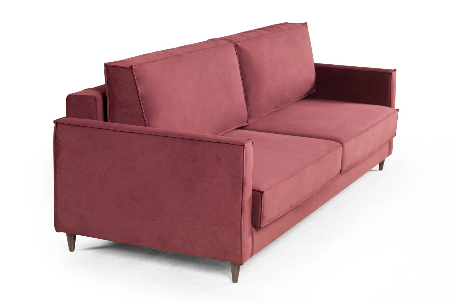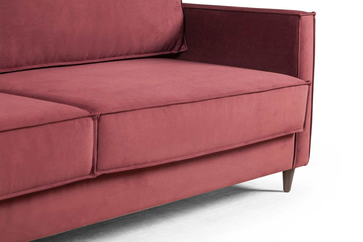 Деревянные конусообразные ножки, на которых стоит диван, создают эффект невесомости, что делает восприятие пространства более легким и свободным. А два цвета опор позволяют органично вписать данную модель как в светлый интерьер, так и в интерьер в темных тонах.