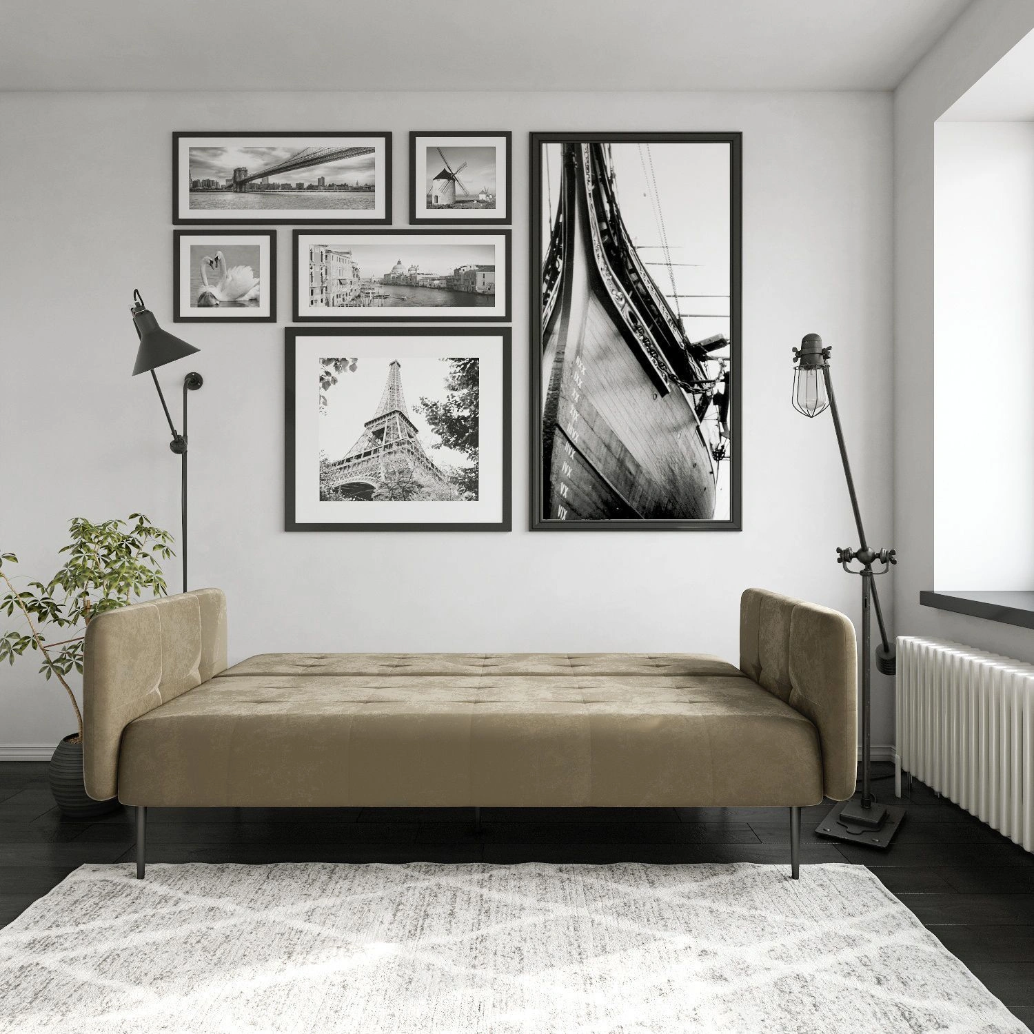 Monaco диван-кровать прямой с подлокотниками, трехместный, бархат пепельно-бежевый 25