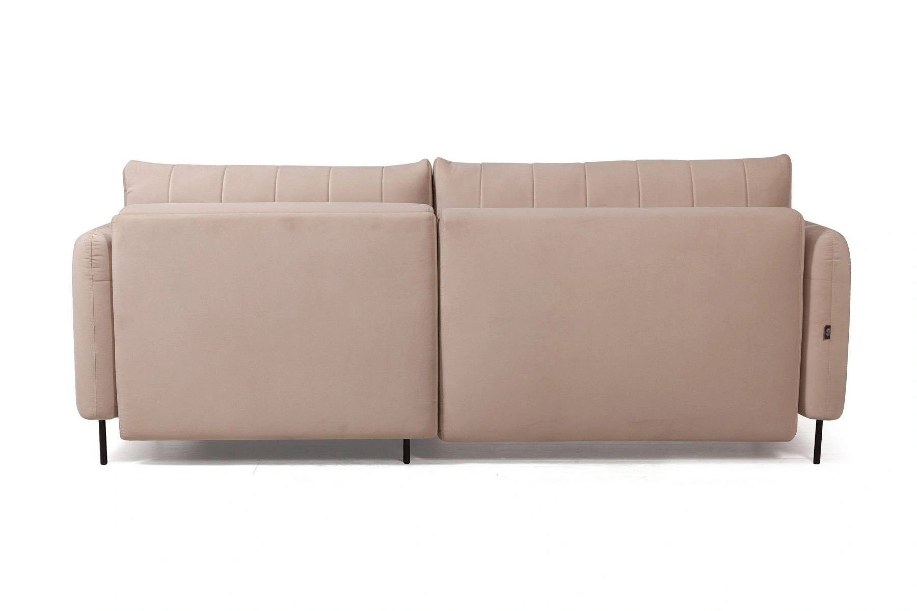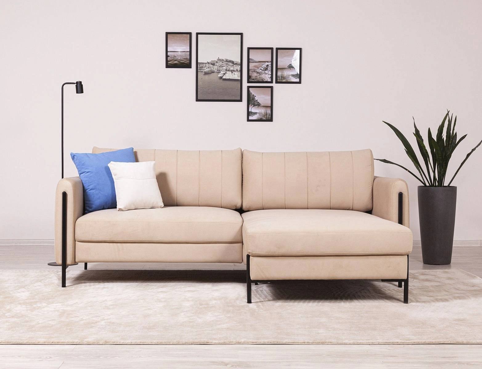 Металлические опоры гладко переходят в декоративный элемент, что придает акцент дивану и неповторимый эффект легкости. Высота опор - 14,5 см. Это позволяют применить современные технологии уборки, например, робот-пылесос.