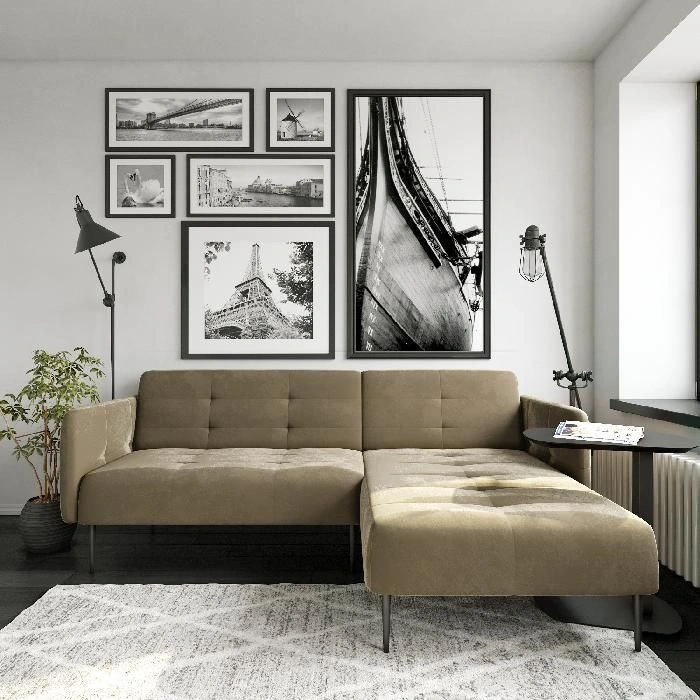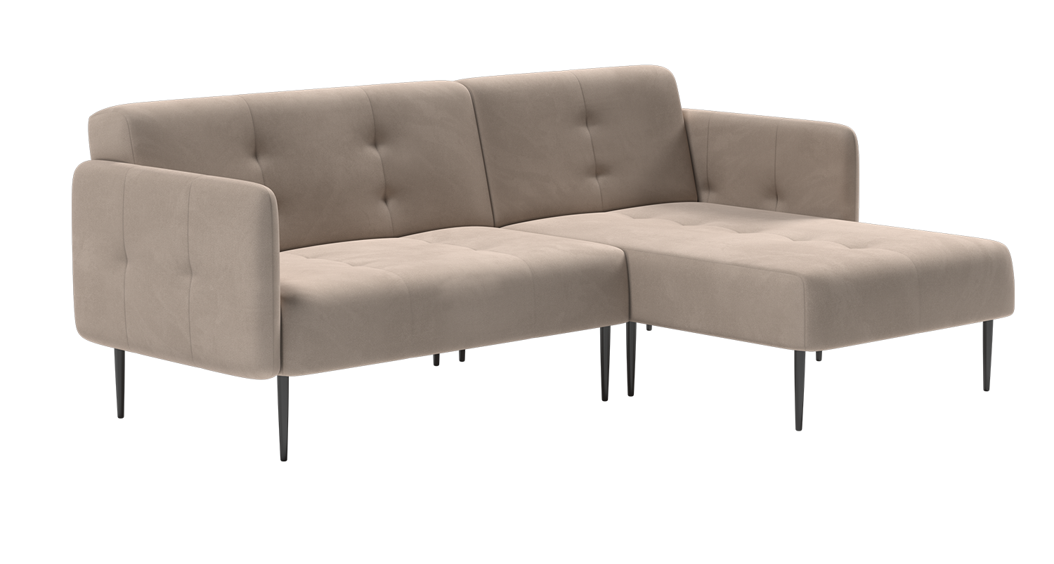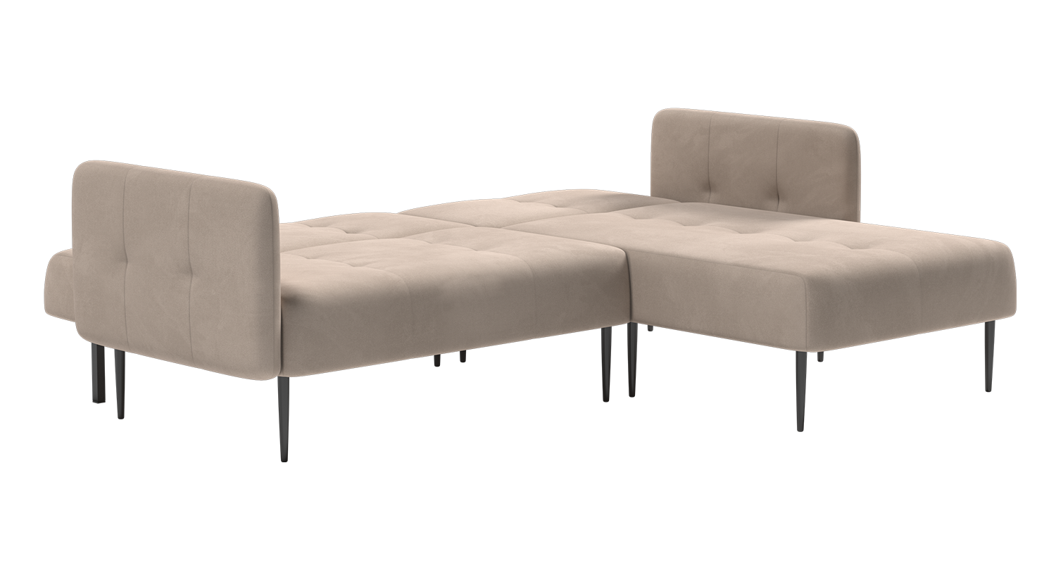 Высокие металлические опоры могут выполнены в двух цветовых вариантах: «черный» и «белый». Они придают легкость внешнему виду модели. Кроме того данная особенность дает возможность повысить прочность и устойчивость дивана. Также, благодаря опорам, под диваном может легко пройти робот-пылесос.