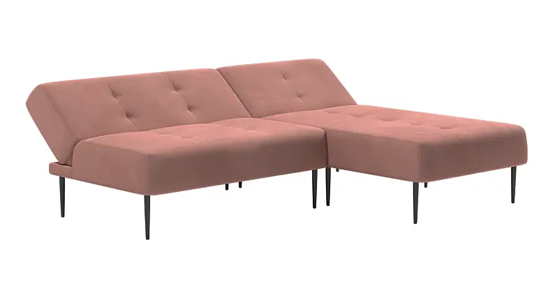 Monaco диван-кровать с шезлонгом, без подлокотников, бархат пудровый 15