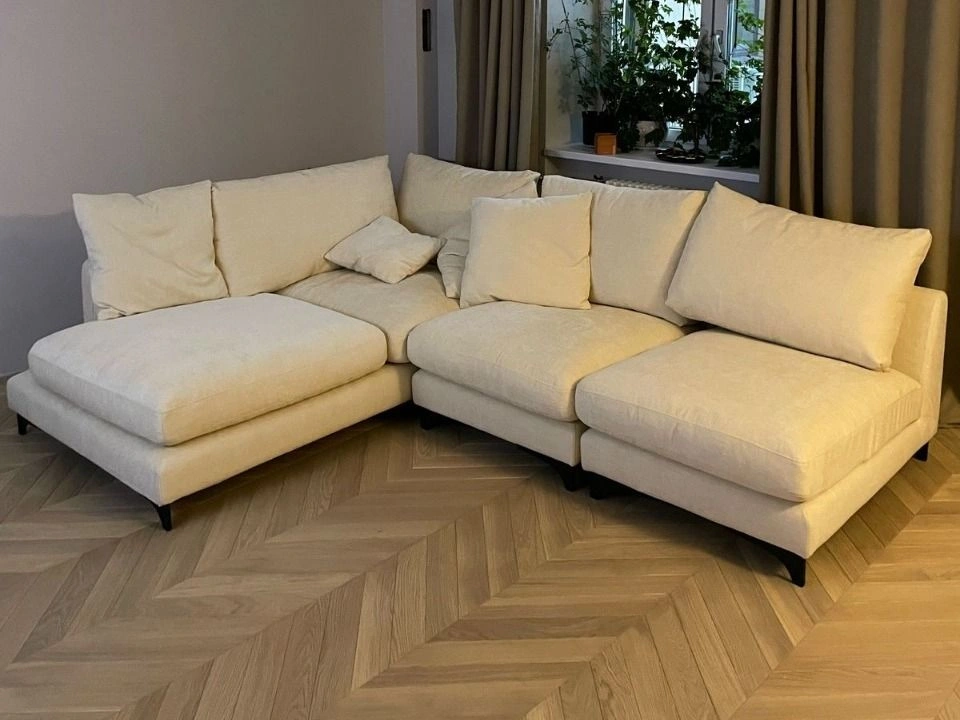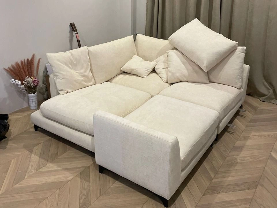 Неоспоримым преимуществом является наличие съемных чехлов. Чехлы снимаются со всех элементов дивана, что позволяет с легкостью производить уход за мебелью, а также дарит возможность заменить чехлы при необходимости.