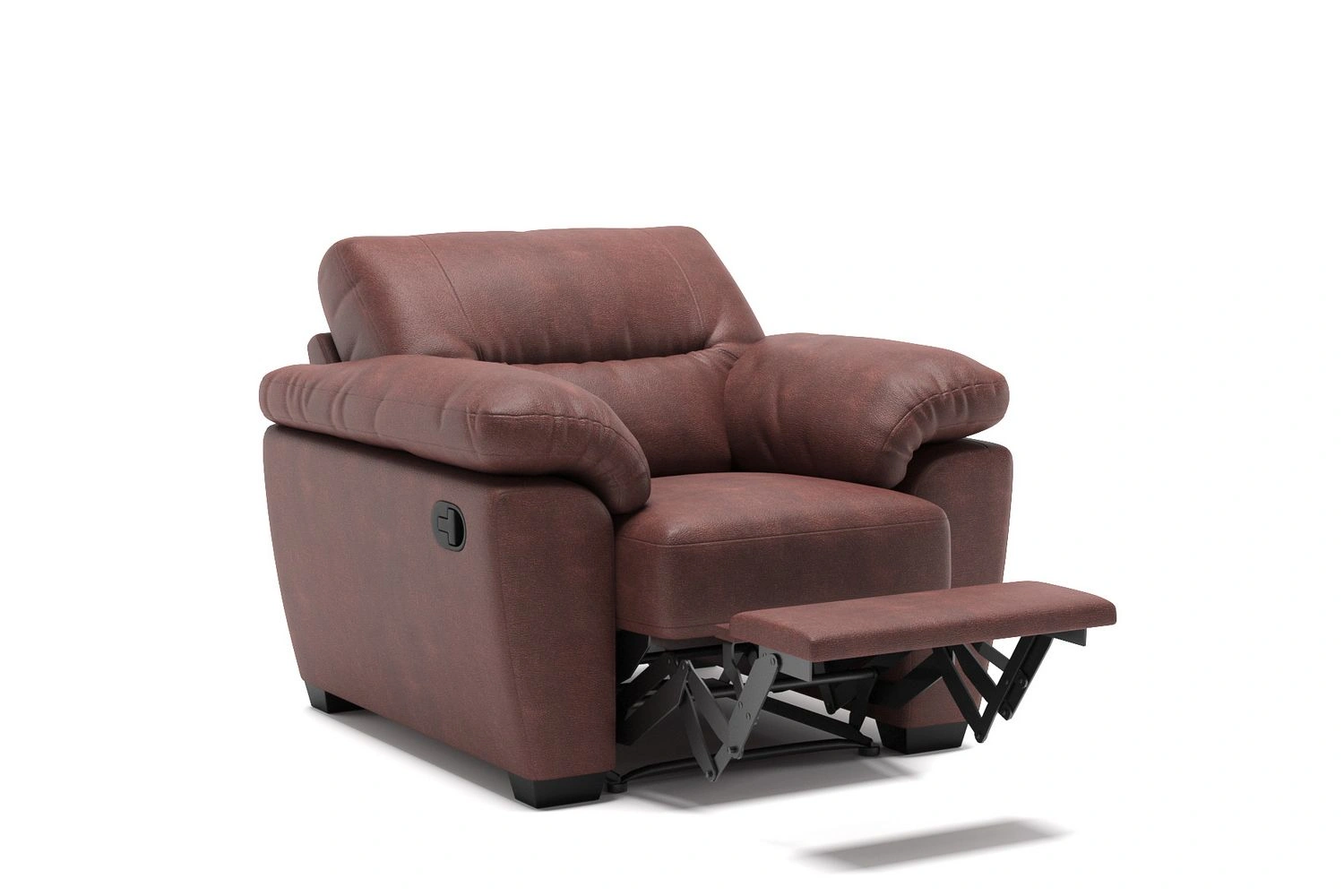 Одно нажатие на механическую клавишу - и кресло с механизмом "Реклайнер" превращается в удобный шезлонг, позволяющий своему владельцу полноценно расслабиться. Положения кресла меняются небольшим усилием при надавливании на спинку; при опускании спинки выдвигается подставка для ног. Максимальная нагрузка на механизм 140 кг.