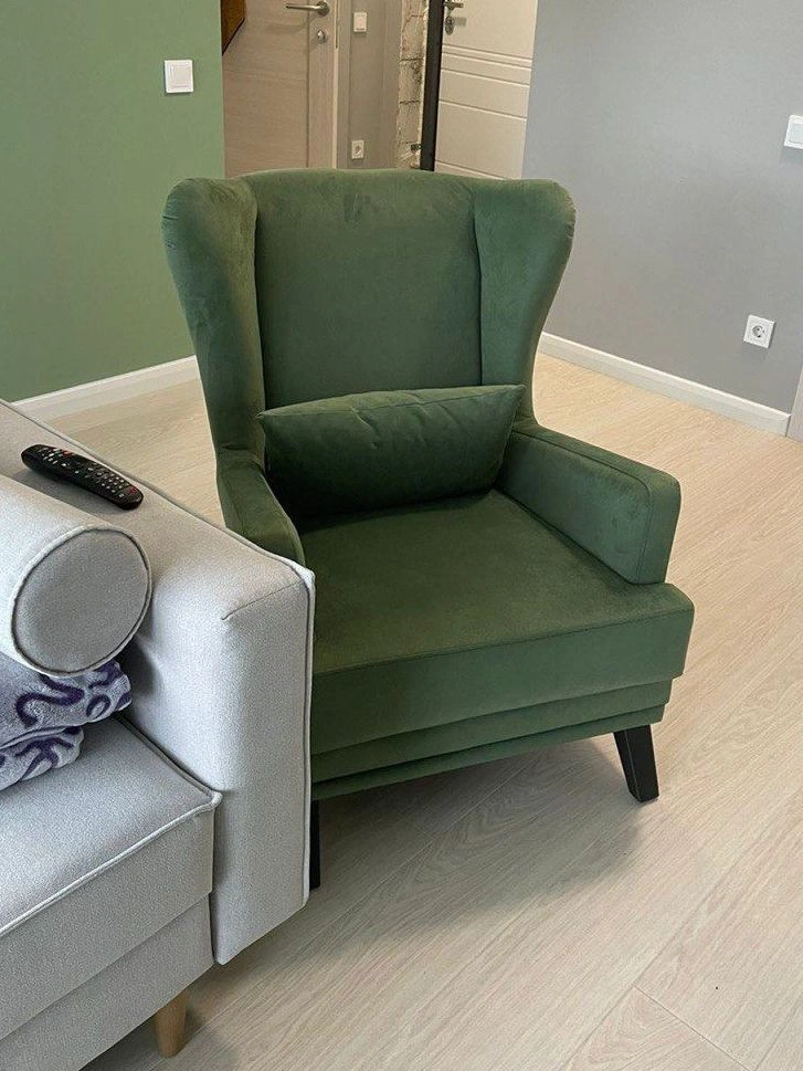 Стильная модель, которая всегда в моде! Высокая спинка с ушками, деревянные ножки и приятное дополнение для максимального комфорта – подушка под спину.