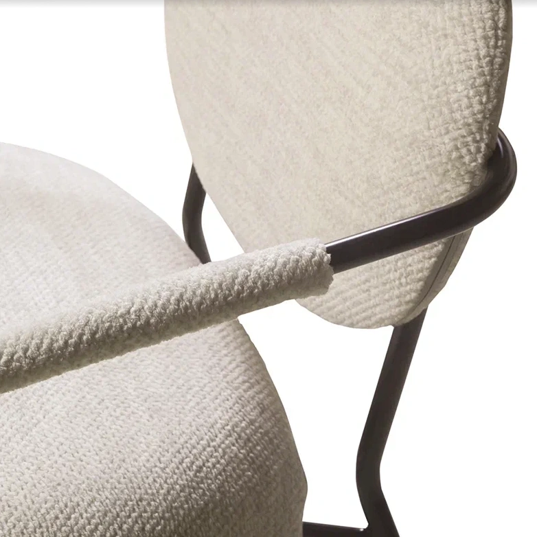 Кресло EGO – это пример безупречного сочетания формы и содержания. Лёгкие металлические опоры, создающие эффект парящей конструкции, эффектно контрастируют с мягкой, объёмной фактурой ткани в нежном светлом оттенке. Такой диалог материалов рождает уникальную эстетику, где современный минимализм встречается с тактильным комфортом.