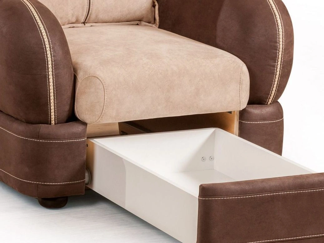 Кресло с выдвижным ящиком «Неаполь» имеет комфортную глубокую посадку и высокую, элегантно изогнутую спинку, что усиливает комфорт во время отдыха. Задняя часть спинки кресла выполнена в той же обивке, что и основная часть, что дает возможность расположить их в центре комнаты, произведя зонирование пространства, не испортив внешний вид интерьера. Оно прекрасно подойдет для тех, кто ценит лаконичный современный стиль и универсальность.