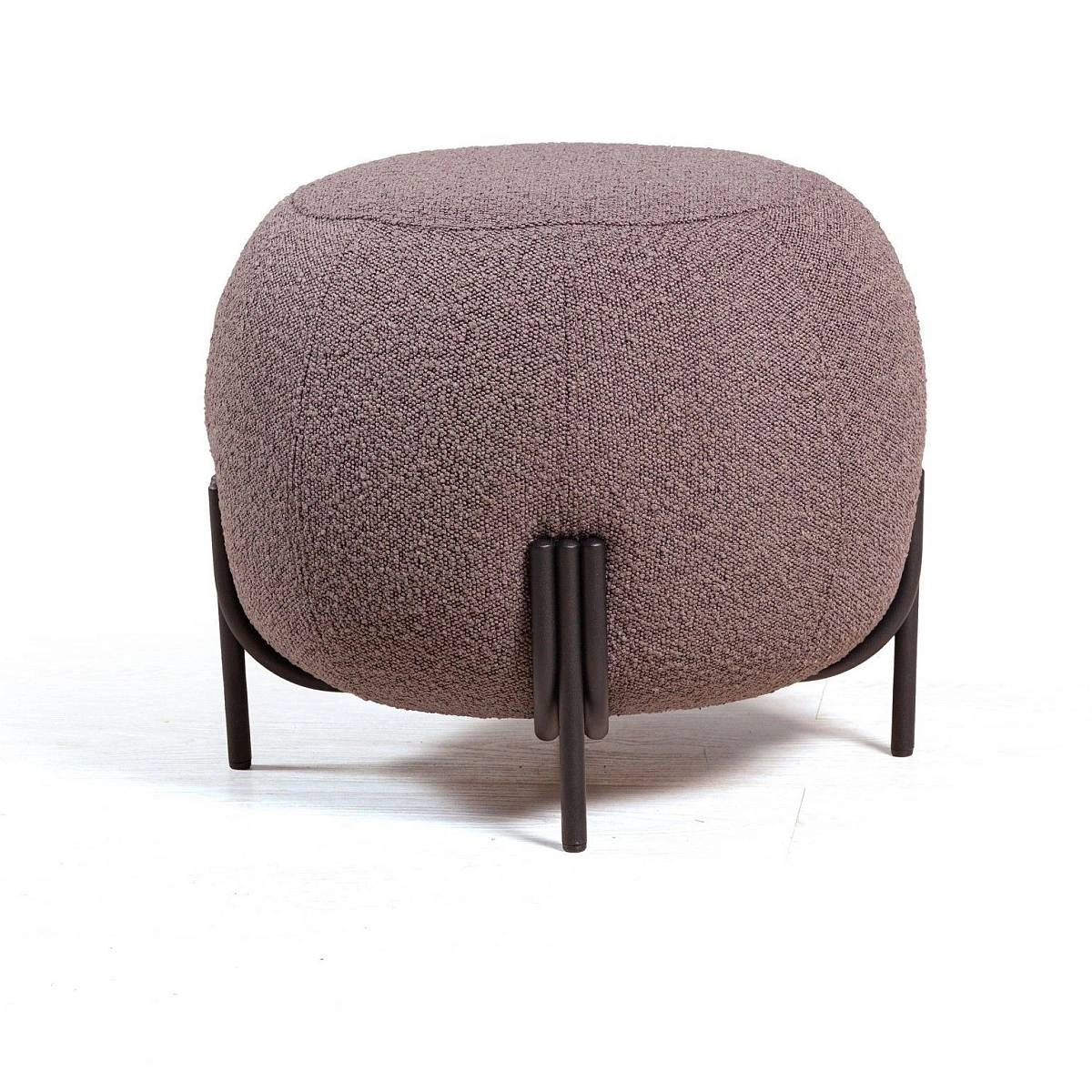 Материал пуфа ткань - букле. Ткань состоит из множества нитей разного оттенка и толщины. Они создают сложную структуру, красивые переливы цвета и полутона. Сидеть на пуфе очень удобно, наполнитель из современного, высокопрочного пенополиуратана, мягкий, не крошится, быстро восстанавливает форму.