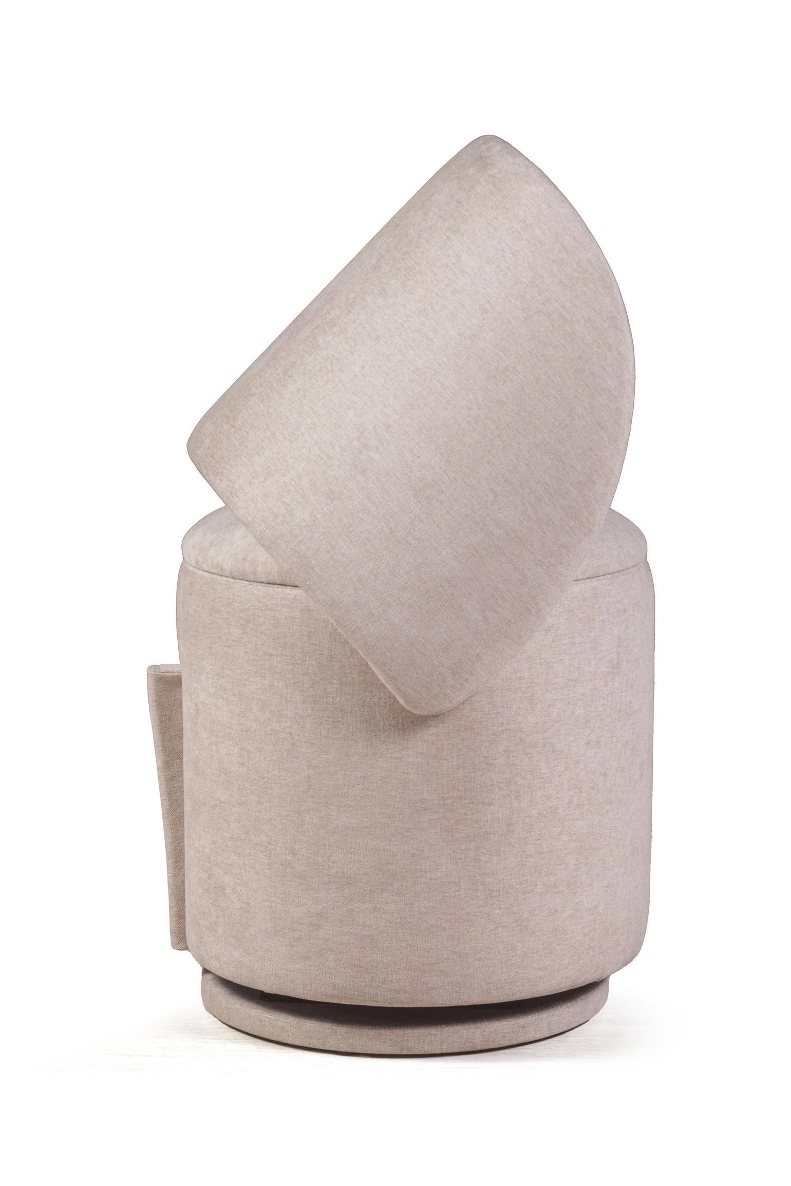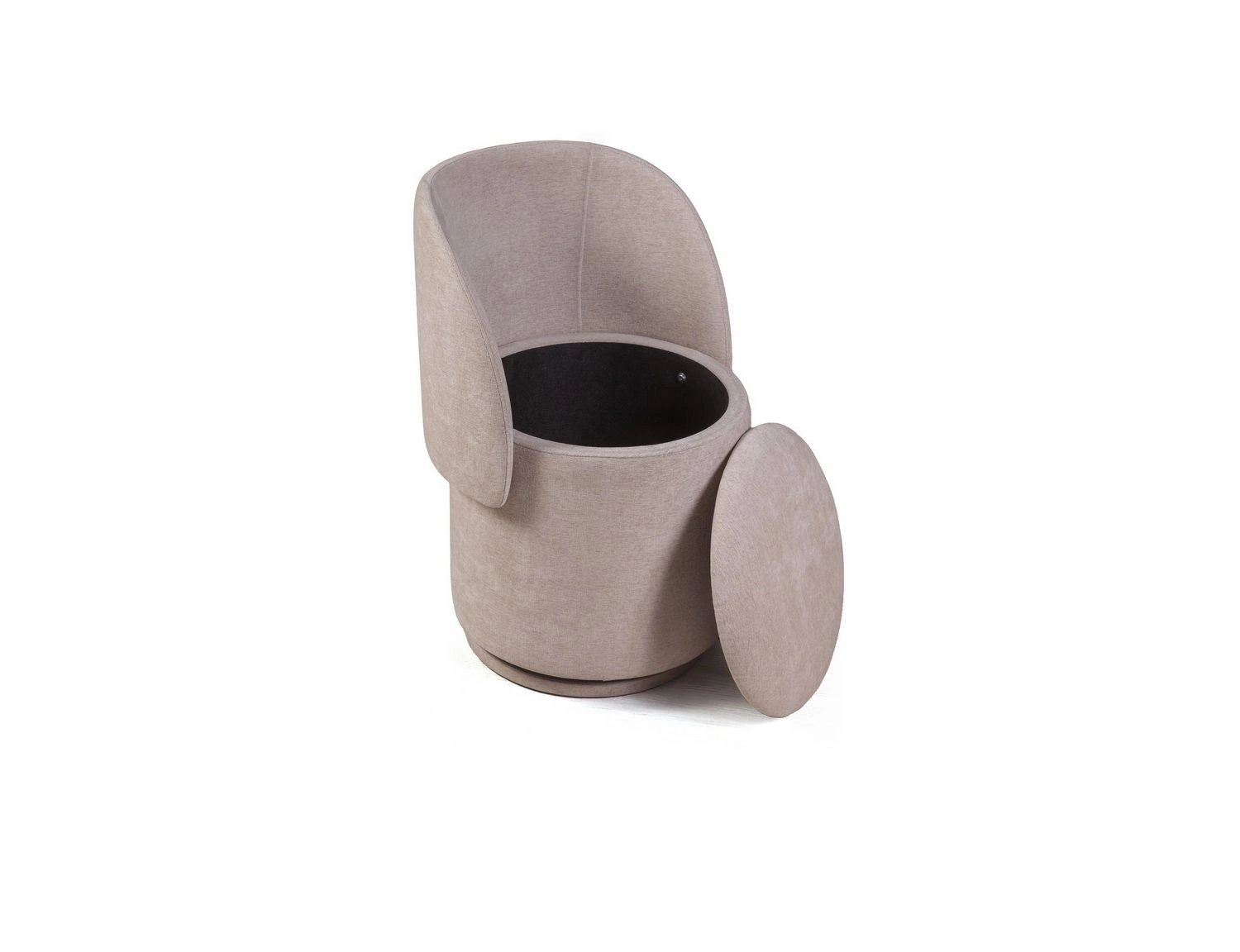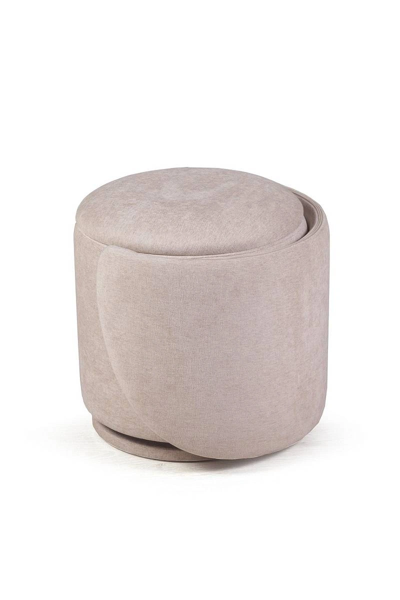 Поворотное основание (360 градусов) делает пуф удобным в использовании – не нужно двигать его целиком, чтобы повернуться. Это особенно актуально для туалетных столиков и небольших пространств.