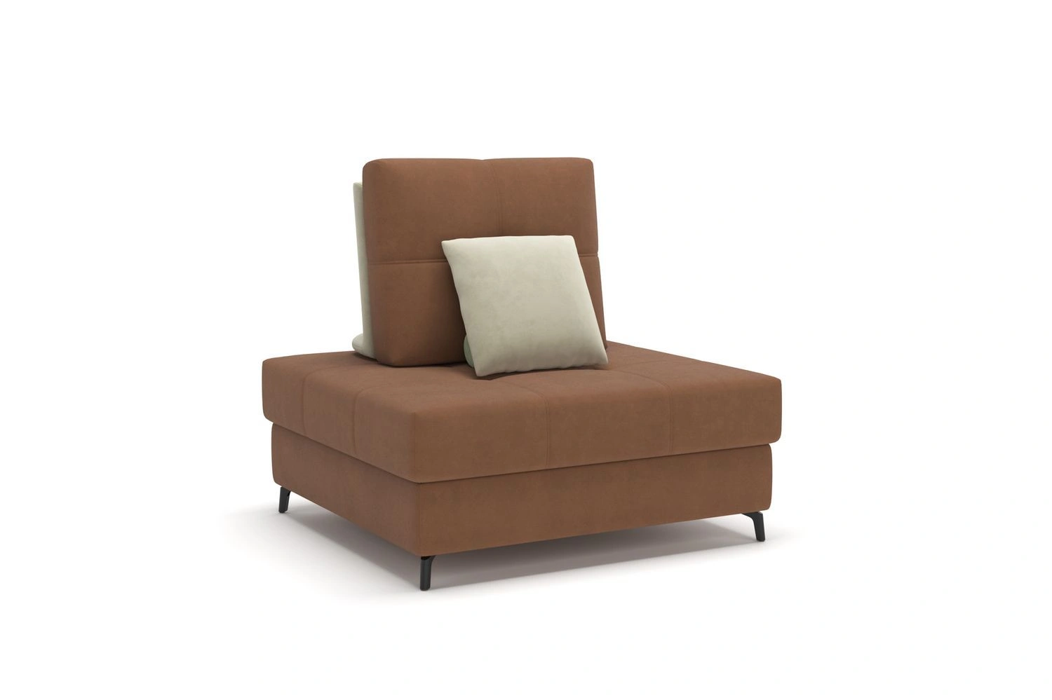 Благодаря съемным приспинным и декоративным подушкам покупатель имеет возможность регулировать глубину сидения, поэтому человек любого роста сможет расположиться на кресле с комфортом.