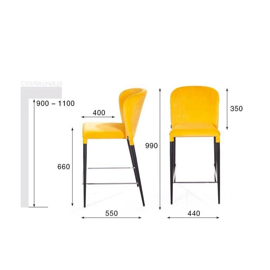 Изюминка полубарного стула Albert – невероятно тонкие металлические ножки черного матового цвета, излишне скошенные назад, как часть дизайнерской задумки. На ножках предусмотрены специальные пластиковые накладки, которые придают стулу дополнительную устойчивость и защищают пол от царапин.