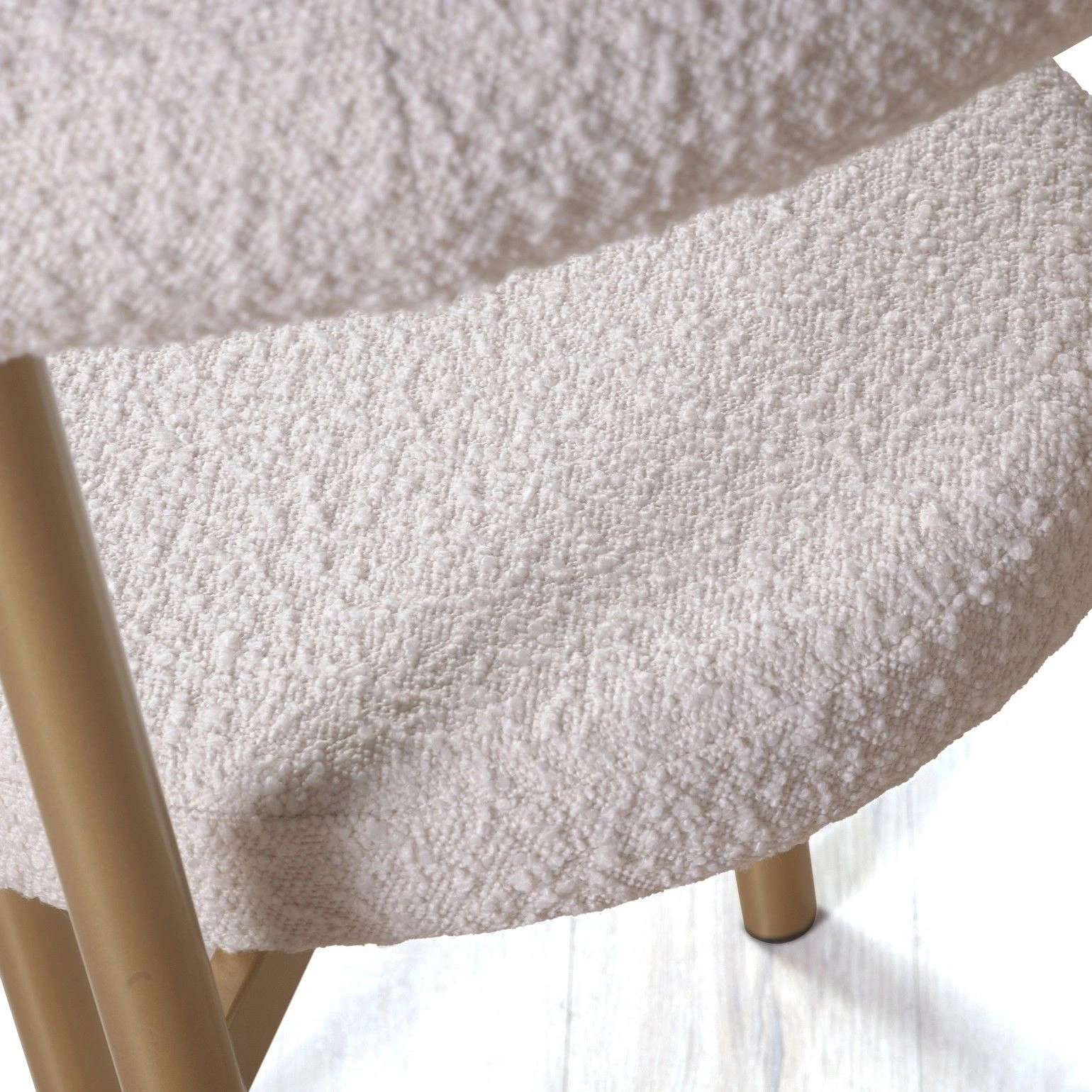 Стул обтянут высококачественным букле, которое обеспечивает мягкость, износостойкость и долговечность. Этот материал добавляет изделию особую текстуру и делает его практичным для повседневного использования.