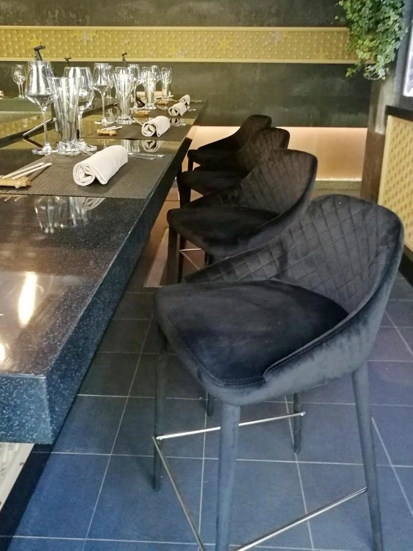 Металлические опоры черного матового цвета в форме «конус». На опорах предусмотрены защитные пластиковые накладки, которые придают стулу дополнительную устойчивость и защищают пол от царапин. Опоры барного и полубарного стула оснащены подножьем для увеличения прочности конструкции и выполнения функции опоры для ног