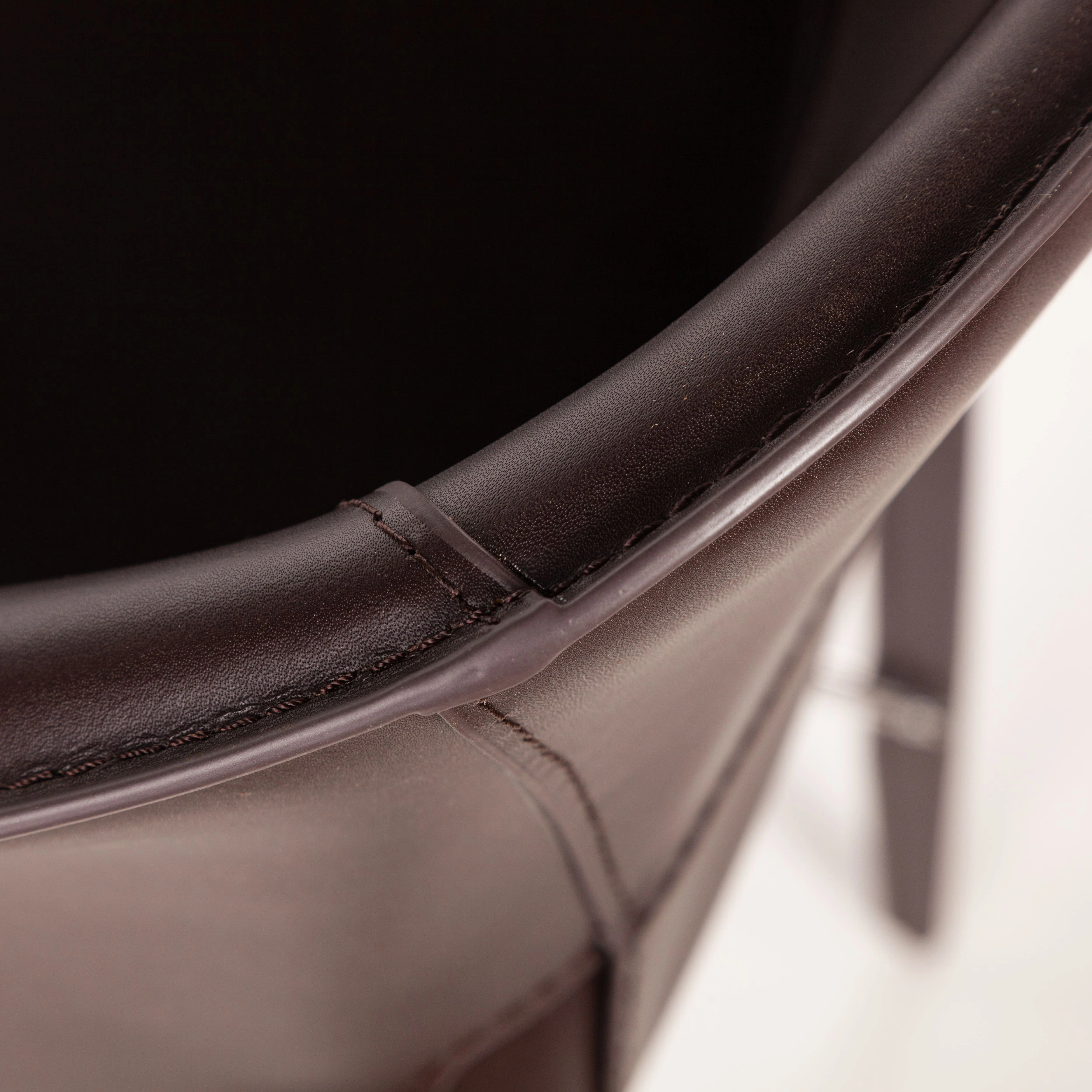 Стул обтянут высококачественной натуральной кожей, которая обеспечивает мягкость, износостойкость и долговечность. Этот материал подчеркивает роскошь изделия и делает его универсальным выбором для любого интерьера.