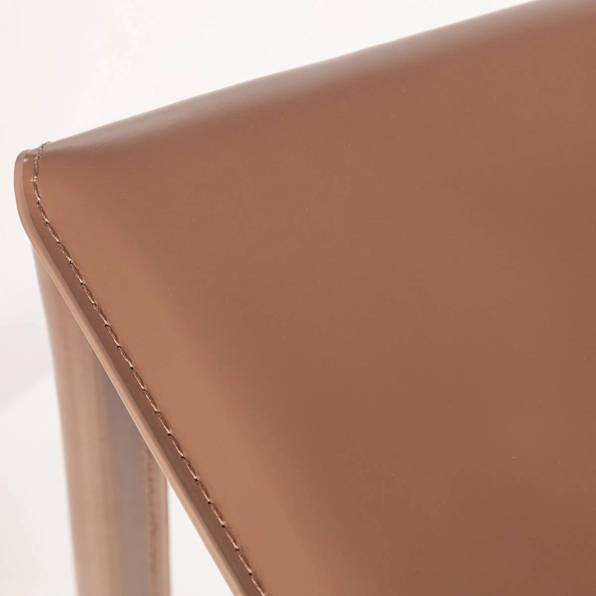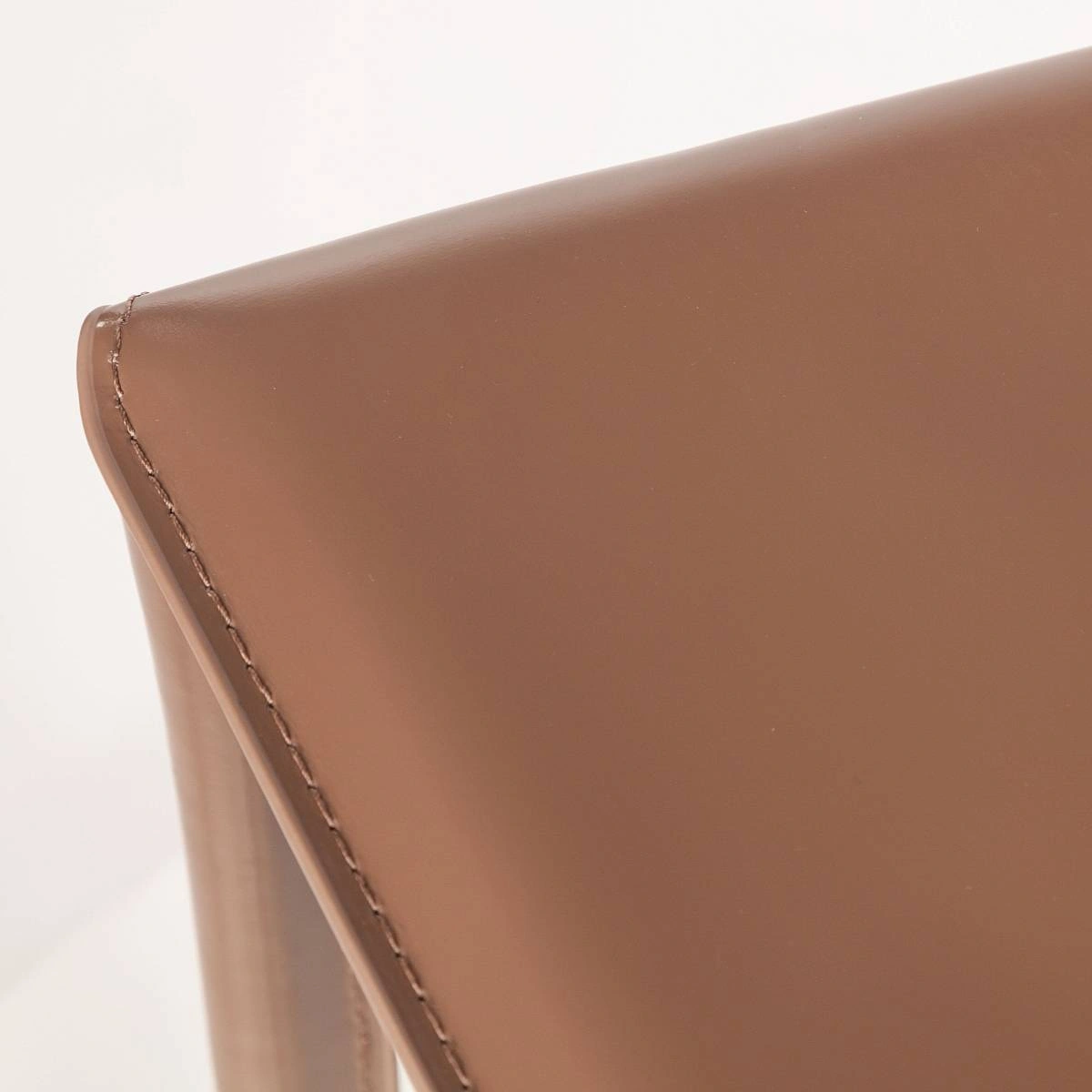 Крепкие металлические ножки скрыты под натуральной кожей такого же цвета, как и сам стул, благодаря этому создается лаконичный образ единого целого. На ножках предусмотрены специальные пластиковые накладки, которые придают стулу дополнительную устойчивость и защищают пол от царапин.