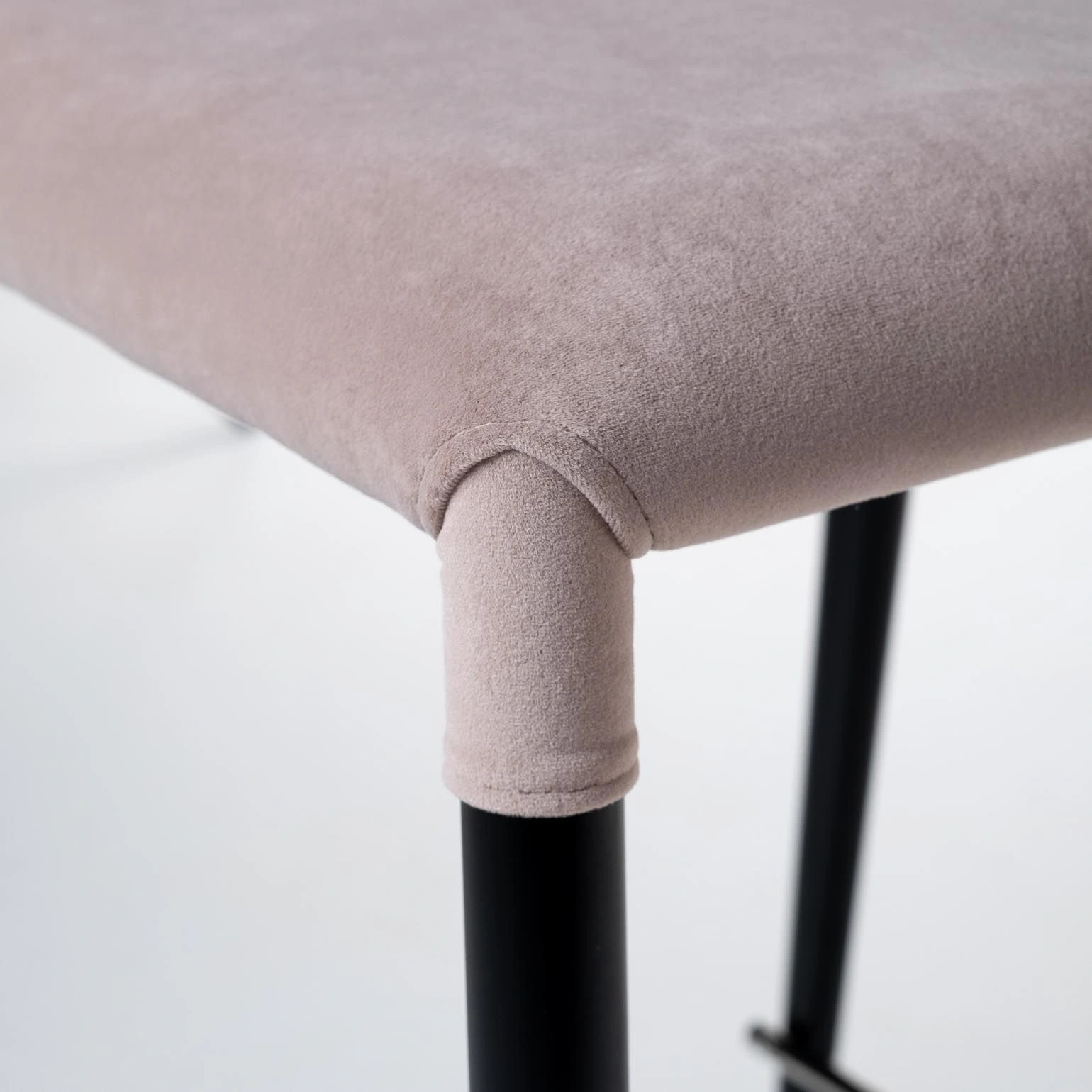 Изюминка полубарного стула Albert – невероятно тонкие металлические ножки черного матового цвета, излишне скошенные назад, как часть дизайнерской задумки. На ножках предусмотрены специальные пластиковые накладки, которые придают стулу дополнительную устойчивость и защищают пол от царапин.