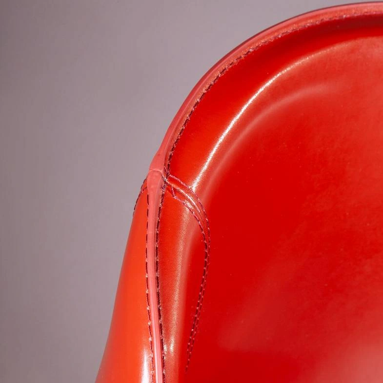 Обивка стула выполнена в регенерированной коже – обивочном материале, который сделан путём переплетения расщеплённых волокон натуральной кожи. В состав модифицированной кожи также входят полимеры и специальные дубильные добавки.
