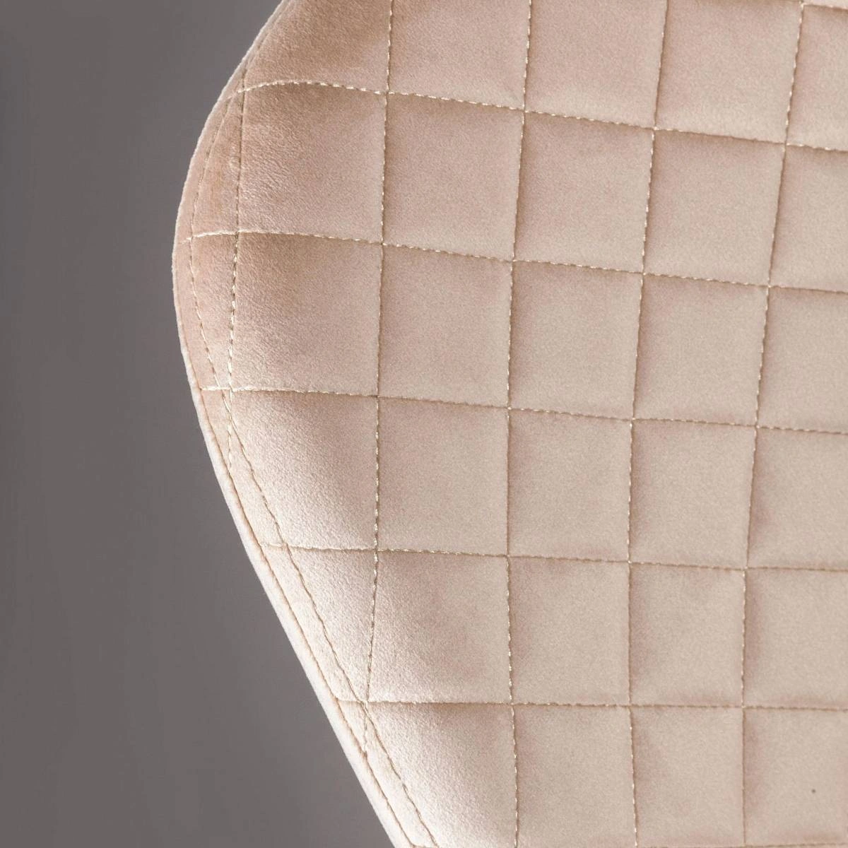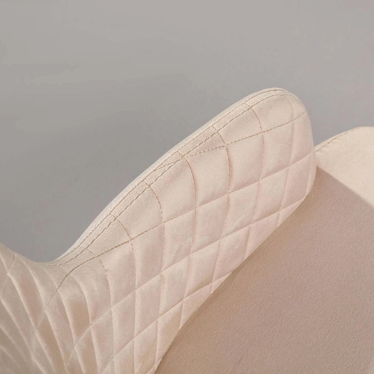 Высокая спинка, плавно переходящая в небольшие подлокотники, глубокое сиденье обеспечивают комфортную посадку. Стул выполнен в мягком велюре с элегантной декоративной прострочкой в виде ромбов, создающих ощущение многофактурности. С ней стул выглядит особенно шикарно! Тонкие металлические ножки скрыты под тканью, в которой выполнен сам стул, грациозно завершают образ изделия.