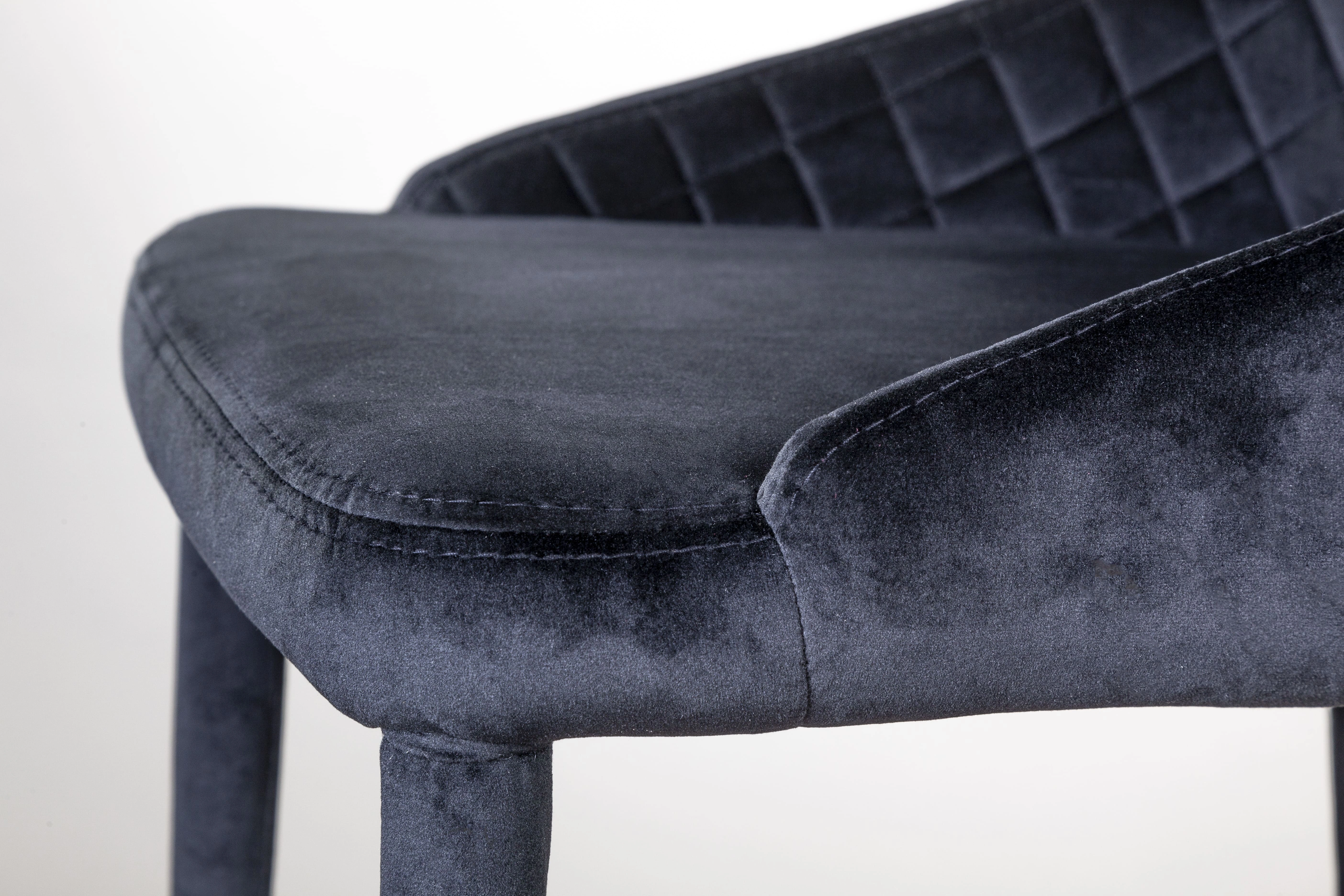 Высокая спинка, плавно переходящая в небольшие подлокотники, глубокое сиденье обеспечивают комфортную посадку. Стул выполнен в мягком велюре с элегантной декоративной прострочкой в виде ромбов, создающих ощущение многофактурности. С ней стул выглядит особенно шикарно! Тонкие металлические ножки скрыты под тканью, в которой выполнен сам стул, грациозно завершают образ изделия.
