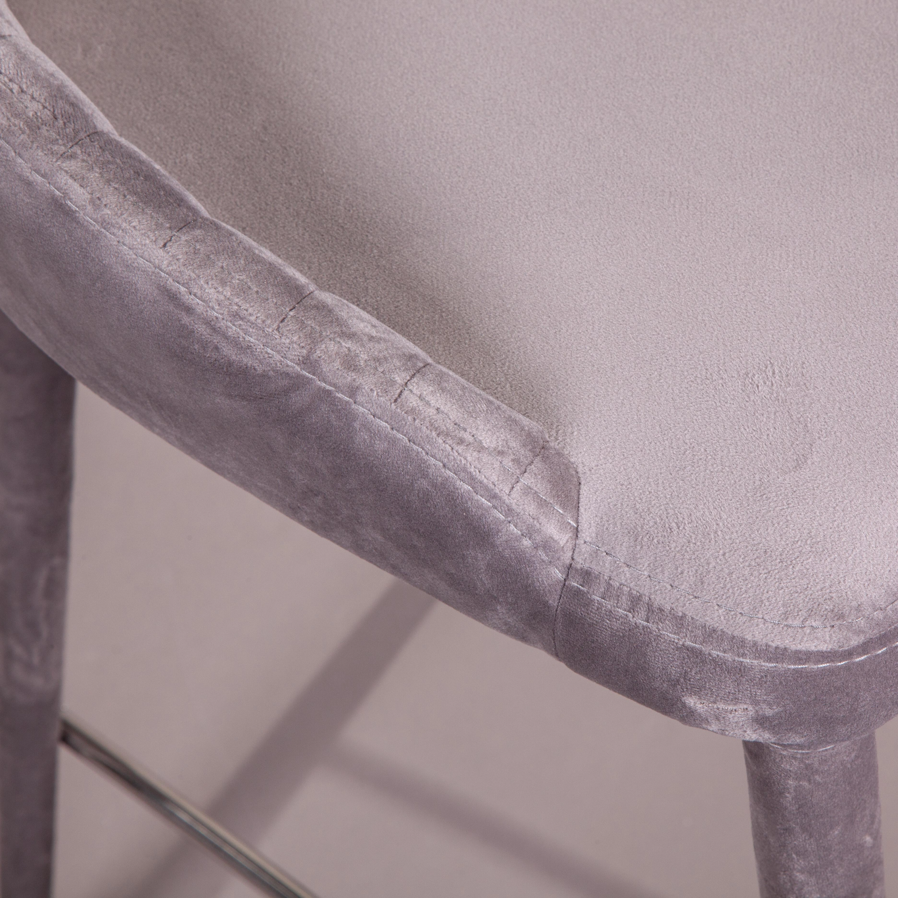 Надежная опора стула - это металлические ножки с порошковым покрытием, скрыты под мягкой велюровой обивкой. Слегка скошенные назад ножки увеличивают устойчивость стула и исключают вероятность раскачивания на нем. Стальная хромированная подножка - необходимая деталь для комфорта сидящего. На ножках предусмотрены специальные пластиковые накладки, которые придают стулу дополнительную устойчивость и защищают полот царапин.