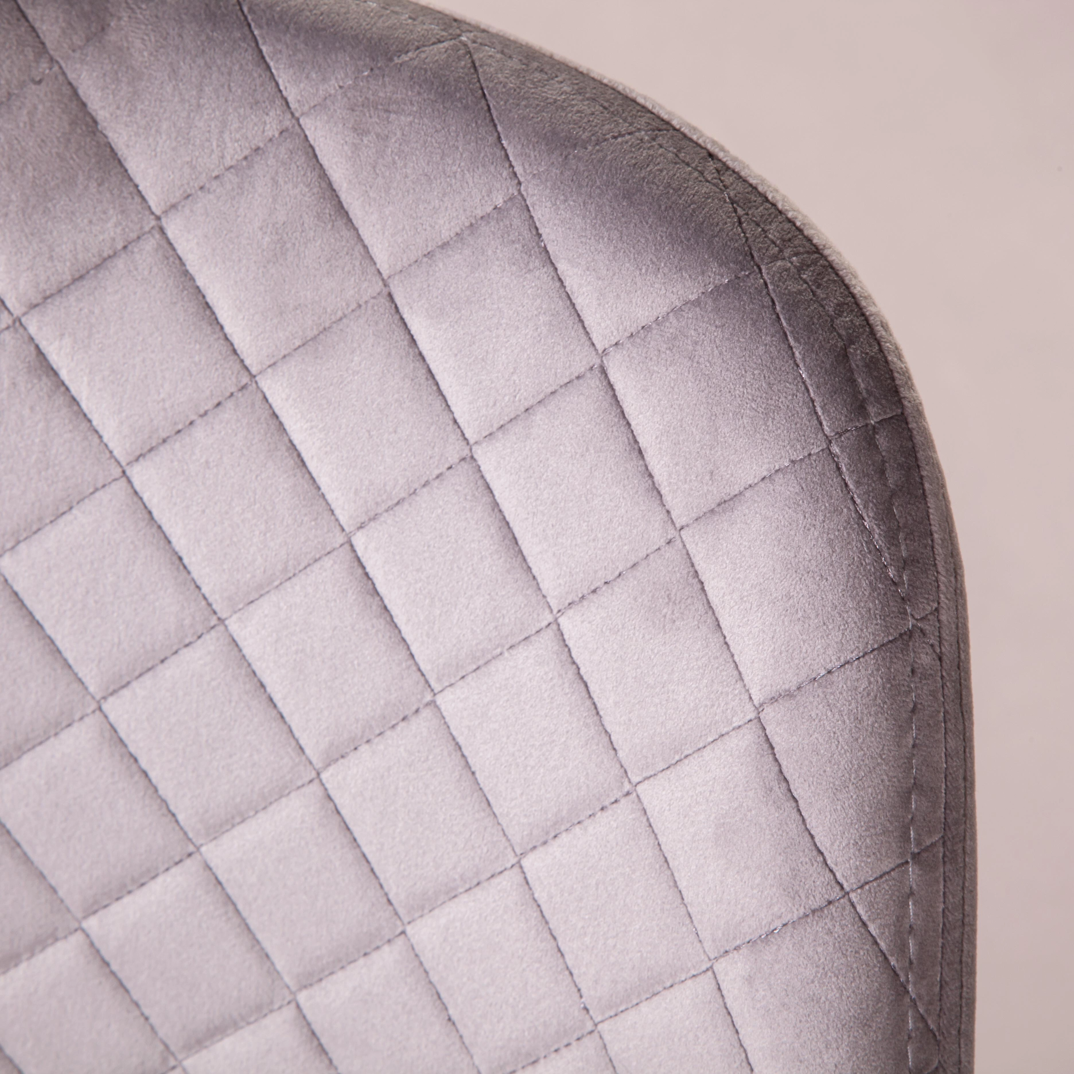 Высокая спинка, плавно переходящая в небольшие подлокотники, глубокое сиденье обеспечивают комфортную посадку. Стул выполнен в мягком велюре с элегантной декоративной прострочкой в виде ромбов, создающих ощущение многофактурности. С ней стул выглядит особенно шикарно! Тонкие металлические ножки скрыты под тканью, в которой выполнен сам стул, грациозно завершают образ изделия.
