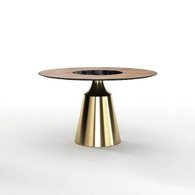 Стол круглый раскладной Lava (120+30+30), керамика глянцевая Top Pandora / опора золото