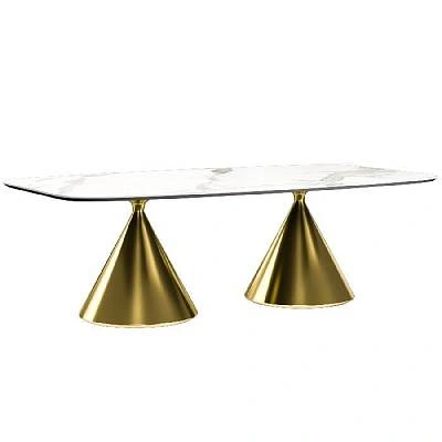 Стол овальный Аксис 200, керамика матовая, белая / опора золото