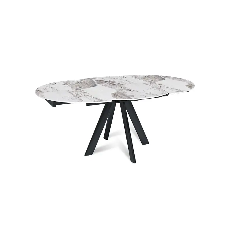 Стол ORION сочетает эффектную керамическую столешницу и стильное металлическое основание, создавая гармоничный образ. Четыре опоры расходятся из центра, придавая конструкции легкость и устойчивость.