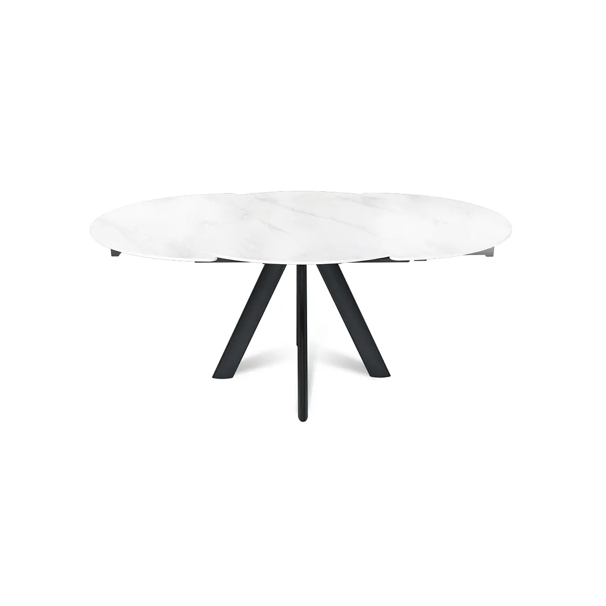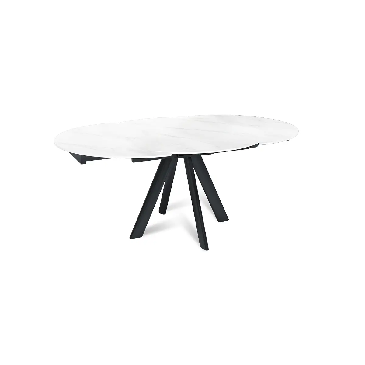 Стол ORION сочетает эффектную керамическую столешницу и стильное металлическое основание, создавая гармоничный образ. Четыре опоры расходятся из центра, придавая конструкции легкость и устойчивость.