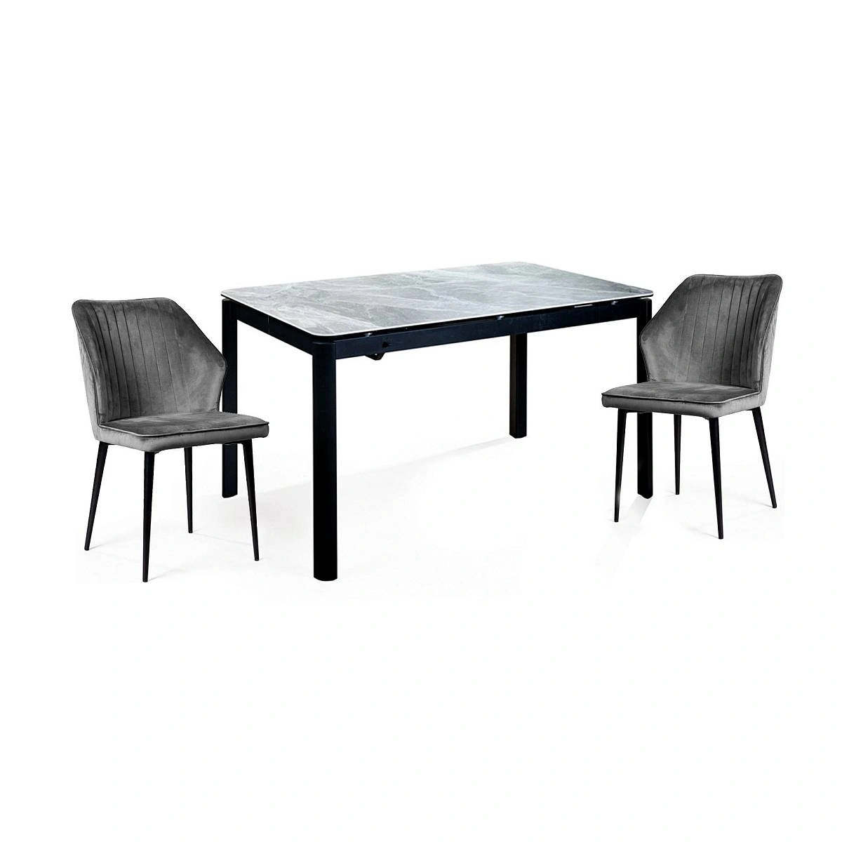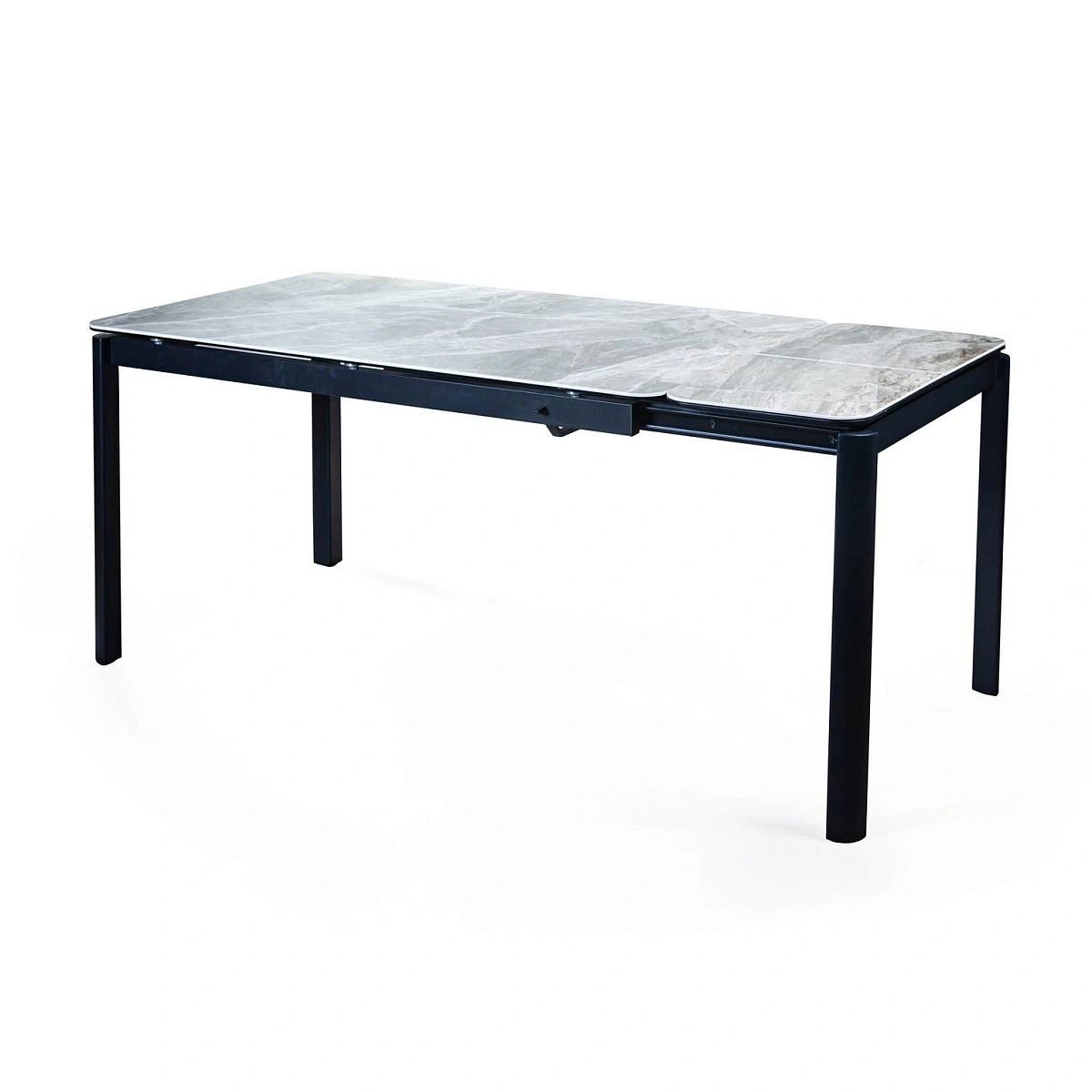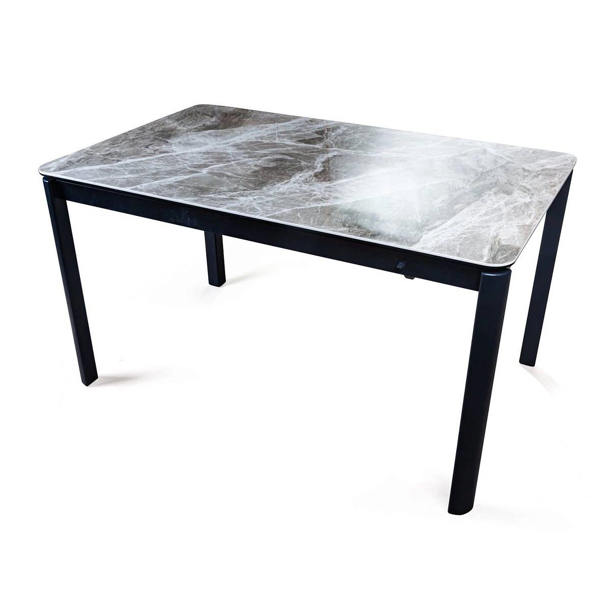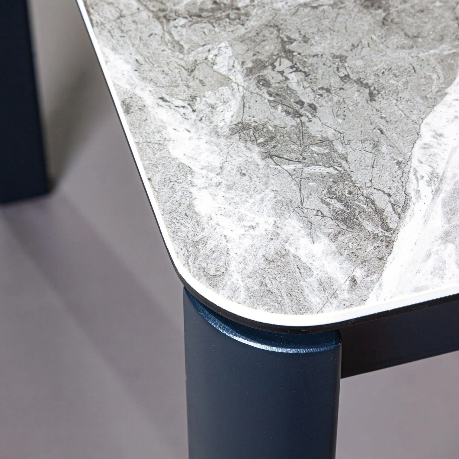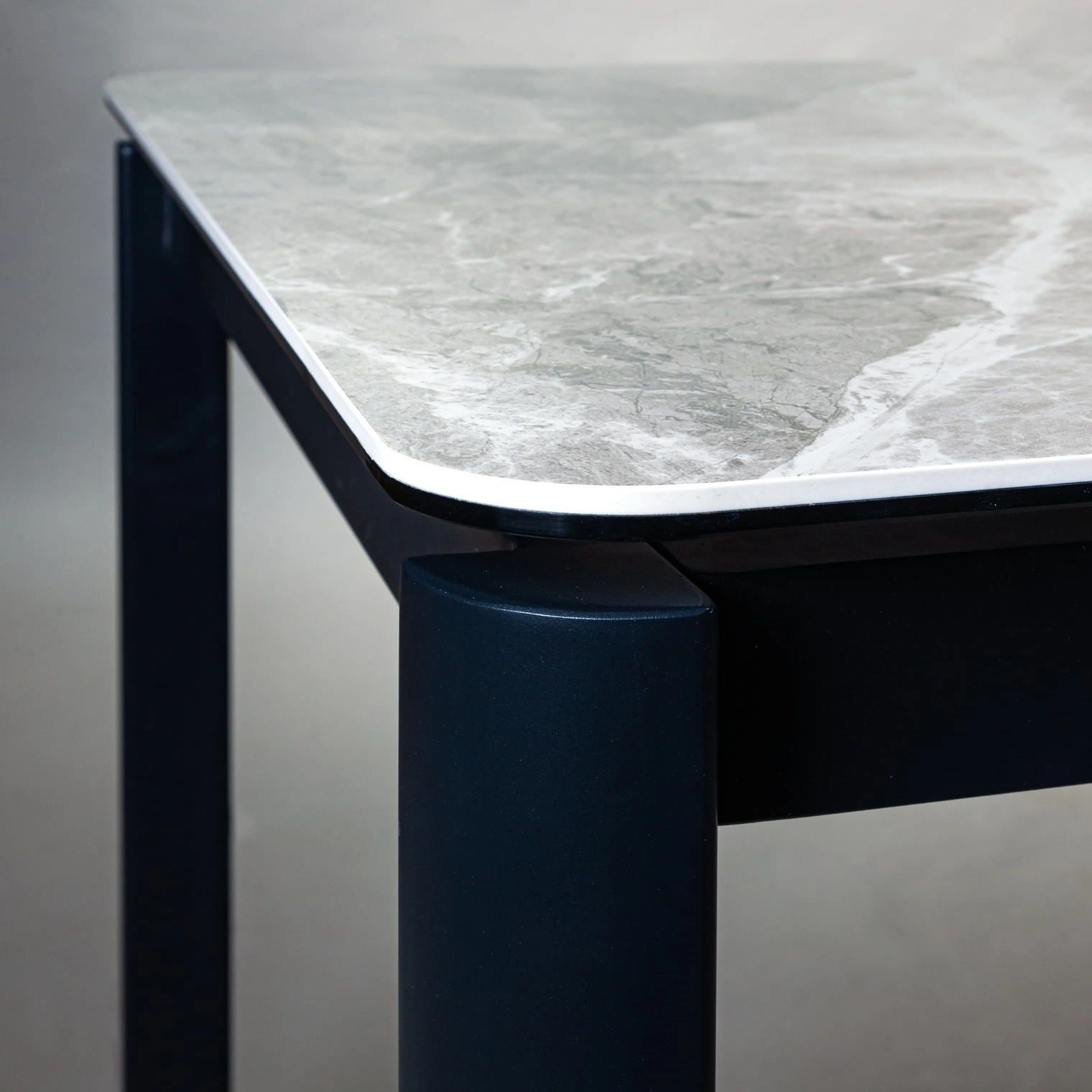 Яркий и притягательный стол Alpha выглядит невероятно стильно за счет контрастного сочетания основательных металлических опор черного матового цвета и керамической столешницы с ее неповторимым рисунком.
