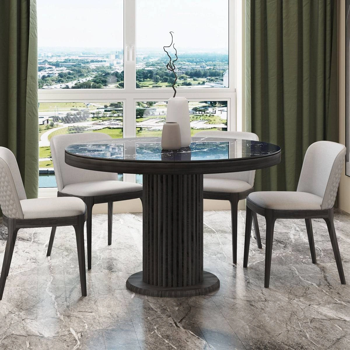 Стол Denver 120+40, круглый раздвижной, глянец